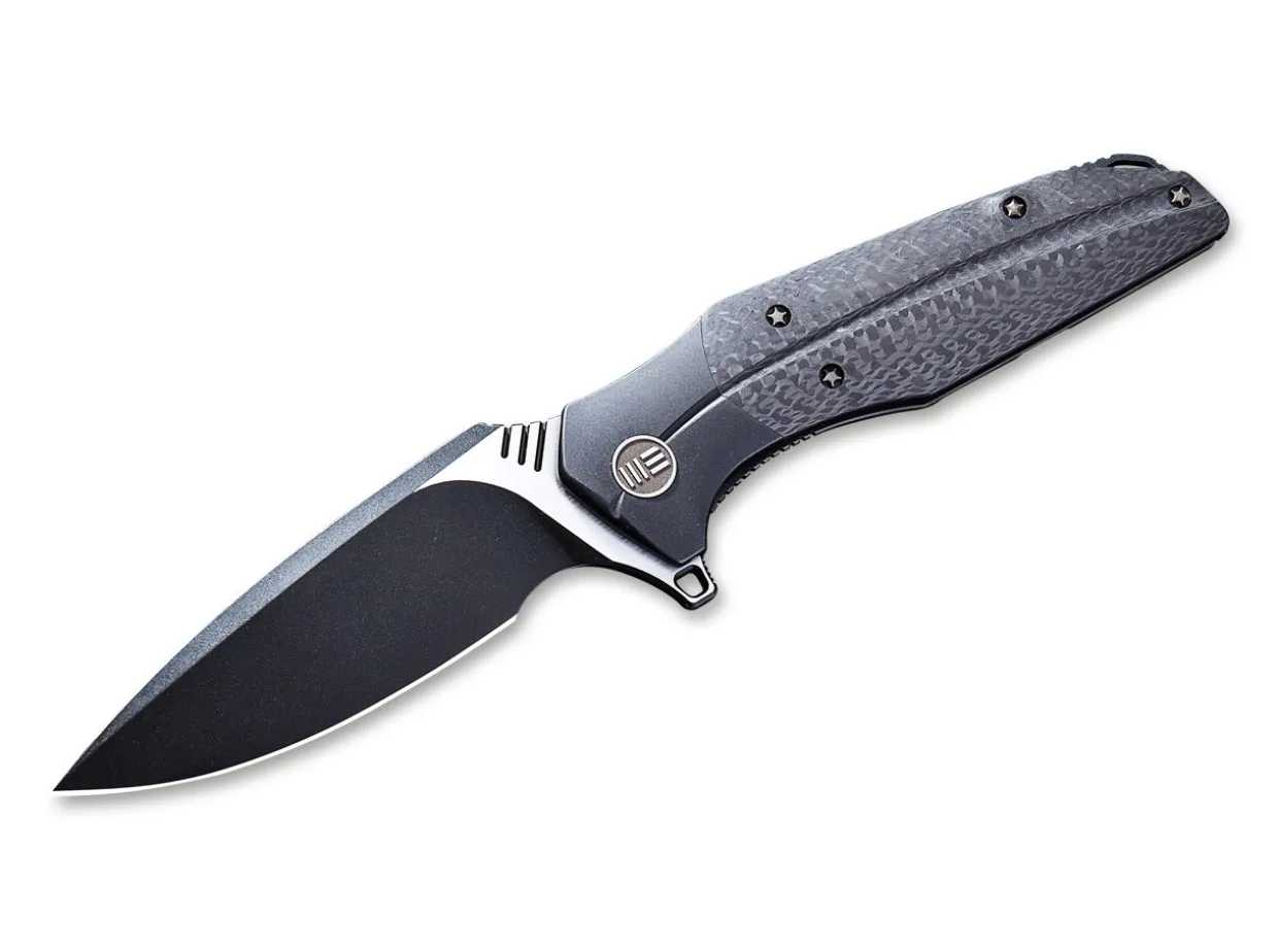 The We Nitida Is A Beautifully Curved Folder With A Titanium Framelock And Carbon Fiber Overlay On The Front Handle. The Clip (Tip-Up) And Back Piece Are Made From Solid Milled Titanium, The Screws And Blade Shaft Cover Are Titanium As Well. The Blade On Ceramic Ball Bearings Consists Of Cpm-S-35Vn.