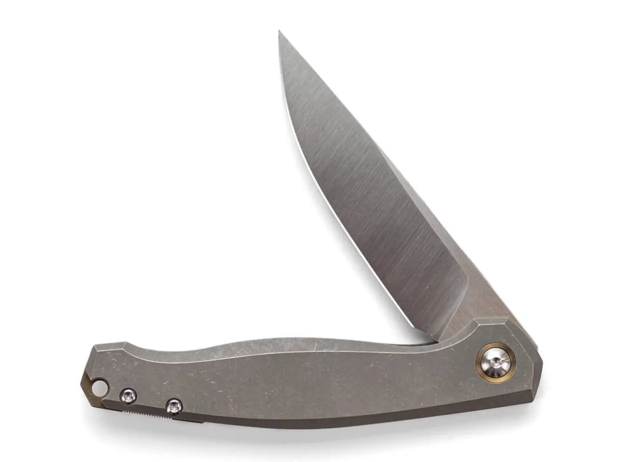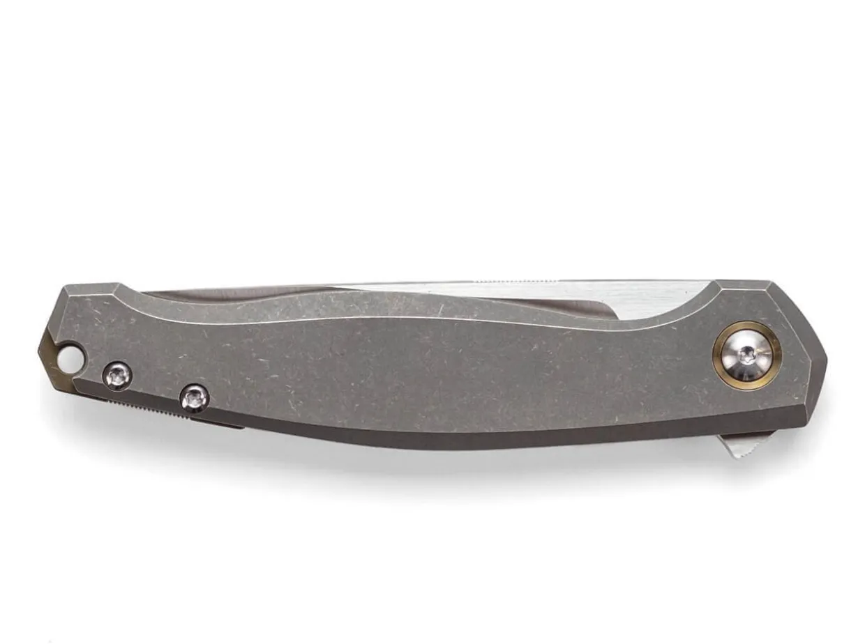 Inspired By The Gm3, The Giantmouse Ace Sonoma Is A Classy Gentleman Folder With Particularly Sleek Lines, Co-Designed By Jens Anso And Jesper Voxnaes. The Blade On Ball Bearings Is Made Of High-Quality Bohler M390 And Is Equipped With A Fine Satinized Finish. It Opens Via Flipper And Is Secured With A Sturdy Framelock. The Handle Made Of High-Strength Titanium Is Ergonomically Shaped And Offers A Comfortable Grip. With A Decorative Axial Screw, Lanyard Hole And Elaborately Milled Clip (Tip-Up).