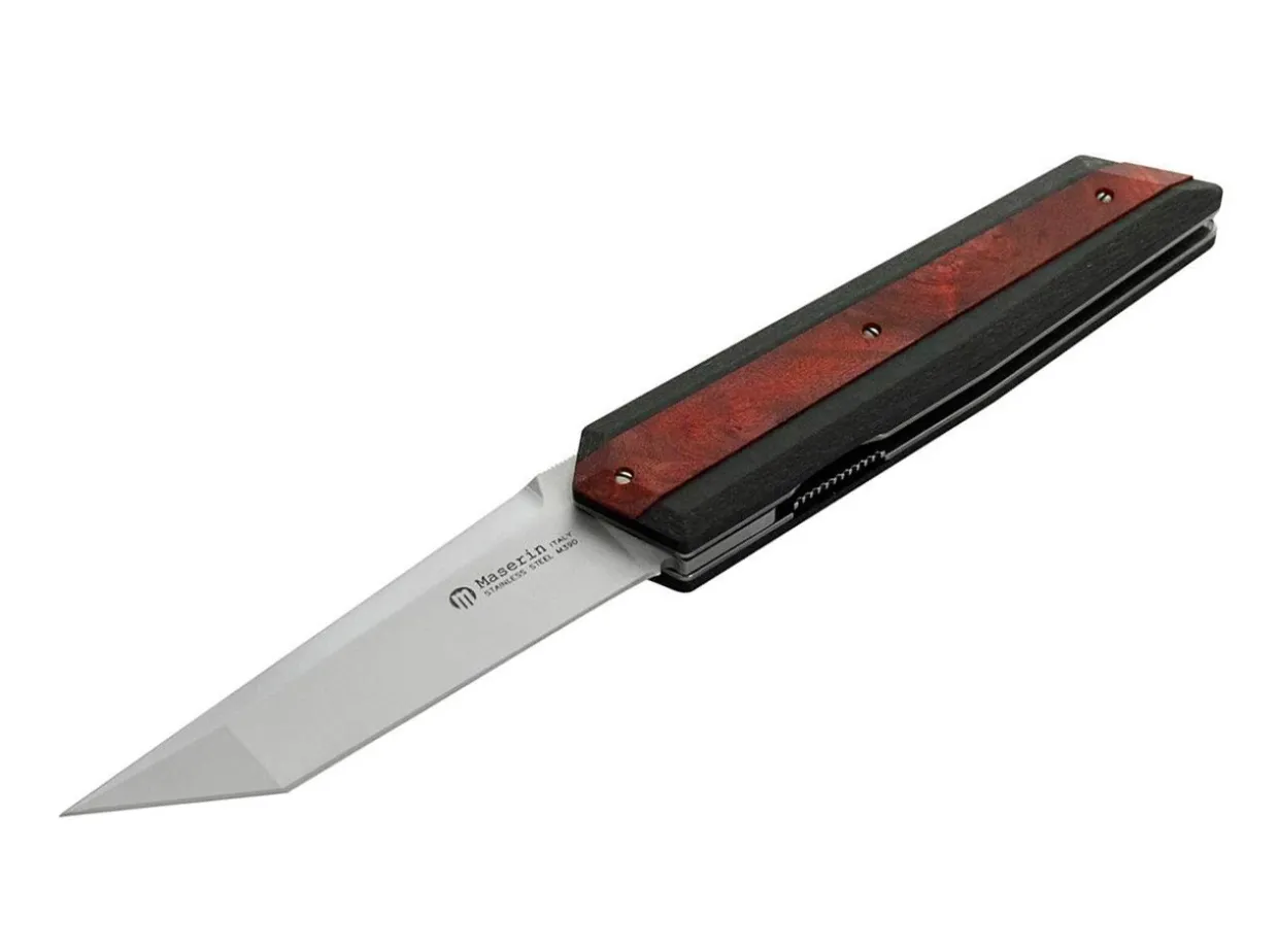 The Am4 Is A Modern Gentleman’S Knife By Italian Manufacturer Maserin That Can Tackle All Everyday Cutting Tasks Despite Its Elegant Appearance. The Satinized M390 Tanto Blade Has Ball Bearings And Opens Easily With A Flipper. The Knife Is Secured With A Classic Linerlock. The Handle Scales Are Made Of Modern Carbon Fiber With An Inlay Of Dyed Burl Wood. With Clip.
