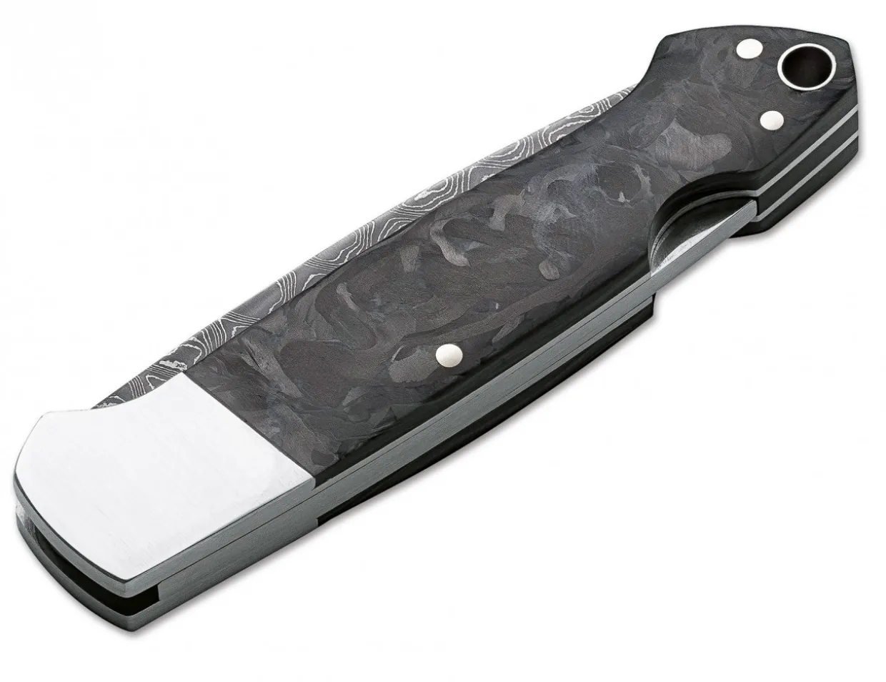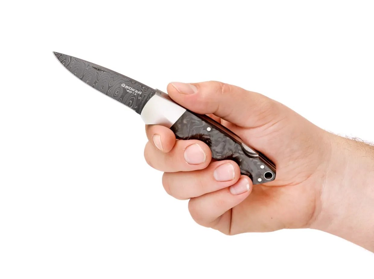 The Annual Damascus 2017 Enthuses With The Special Combination Of Materials, Which Is An Impressive Bridging Between The Traditional Art Of Forging And New, High Tech Materials. The Hand Forged Stainless Damascus, Made By Chad Nichols From Mississippi, Shows The Detailed Pattern “Scrambled,” Which Is Enhanced By The Slender Blade Shape Of This W.C. Davis Design. Brushed Stainless Steel Bolsters Lead To The Handle Scales Made Out Of Marble Carbon Fiber, Which Boasts A Very Vivid And Almost Organic Structure, Providing An Elegant Harmony And Stunning Contrast To The Forged Damascus. The Spacer Is Also Made Out Of Carbon Fiber And Enhances The Exclusivity Of This Extraordinary Piece. The Annual Damascus Collector´S Knife 2017 Is Not Only A Great Knife For The Collector, But Also An Exclusive Edc, And Sets A New Highlight Within The Series. Hand Made In The Boker Knife Manufactory In Solingen. Delivered With A Certificate Of Authenticity, In A Special Frame Display, Which Holds The Knife Open In A Floating Position. Limited To 999 Pieces Worldwide.