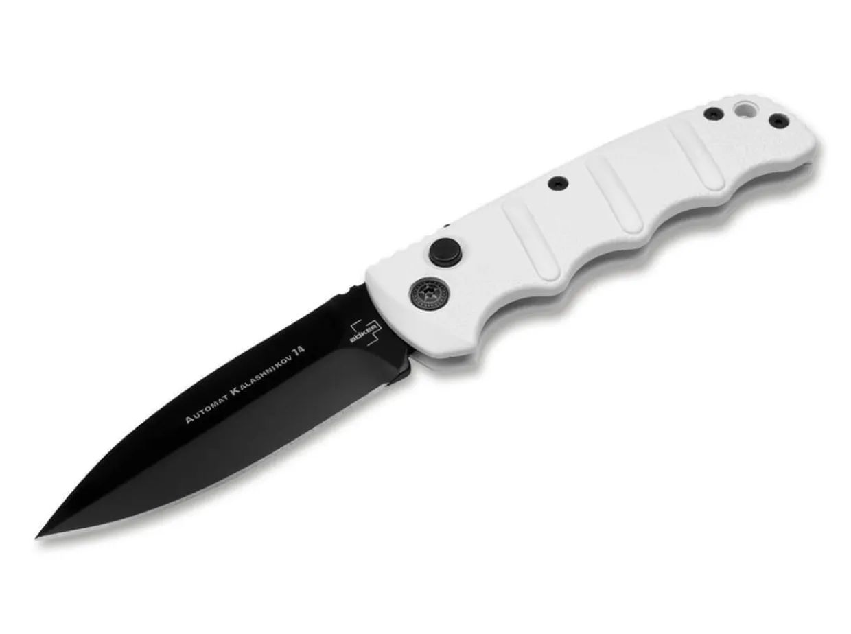 The Boker Plus Aks-74 From The Kalashnikov Series Is Certainly One Of The Most Popular Models In Our Range And Has Been Produced In Numerous Different Variants In Recent Years. Blade And Screws Of The Exclusive Imperial White Edition Have A Black Coating. The White Aluminium Handle Is Reminiscent Of The Bayonet Of The Famous Assault Rifle And The Raised Structural Tracks Offer A Secure Grip In Any Situation. The Coated Blade Is Made Of Aus-8 Stainless Steel And Can Be Secured With A Slide Lock In Addition To The Push Button. With Clip (Tip-Up).