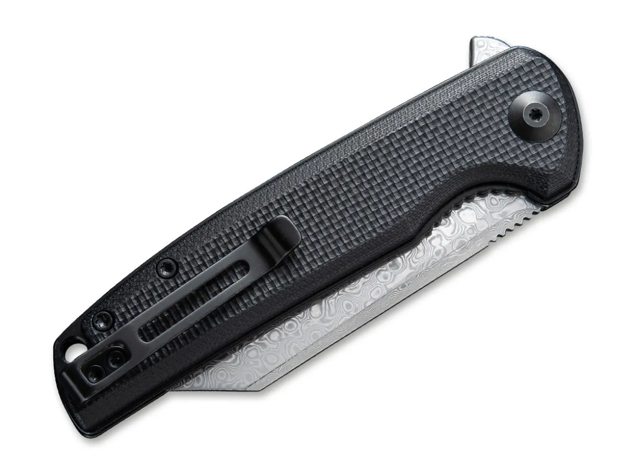 The Civivi Brigand Is Most Notable For Its Dramatic Wharncliffe Blade, But Has Some Other Great Features Too. This Brigand Has A Damascus Steel Blade, Which Opens With A Flipper And Is Secured With A Linerlock. The Textured, Black G10 Handle Scales Ensure A Good Grip And Excellent Strength. With Lanyard Hole And Detachable Clip (Tip-Up).
