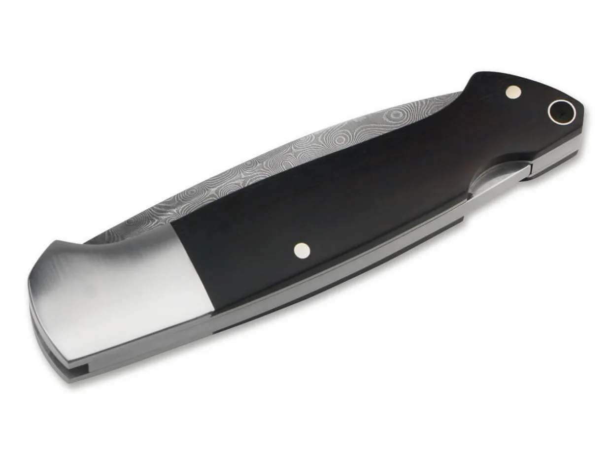The Boker Davis Is Equipped With A Traditional Droppoint Blade, The Shape Of Which Has Been Tried And Tested For Decades In Hunting And The Wilderness. It Is Made From The Unique Steam Engine Damascus And Is Locked By A Sturdy Backlock. The 180-Layer Damascus Was Forged By Chad Nichols From A Solid Part Of The Shaft Of An Old Transmission Wheel Of Our Manufactory. The Handle Scales Are Made Of Certified Imported Grenadilla Wood. This Classic Pocket Knife Was Designed By The American Knifemaker W.C. Davis From Missouri. Handmade In The Boker Knife Manufactory In Solingen. The Delivery Includes An Individual Serial Number And A Certificate Of Authenticity.