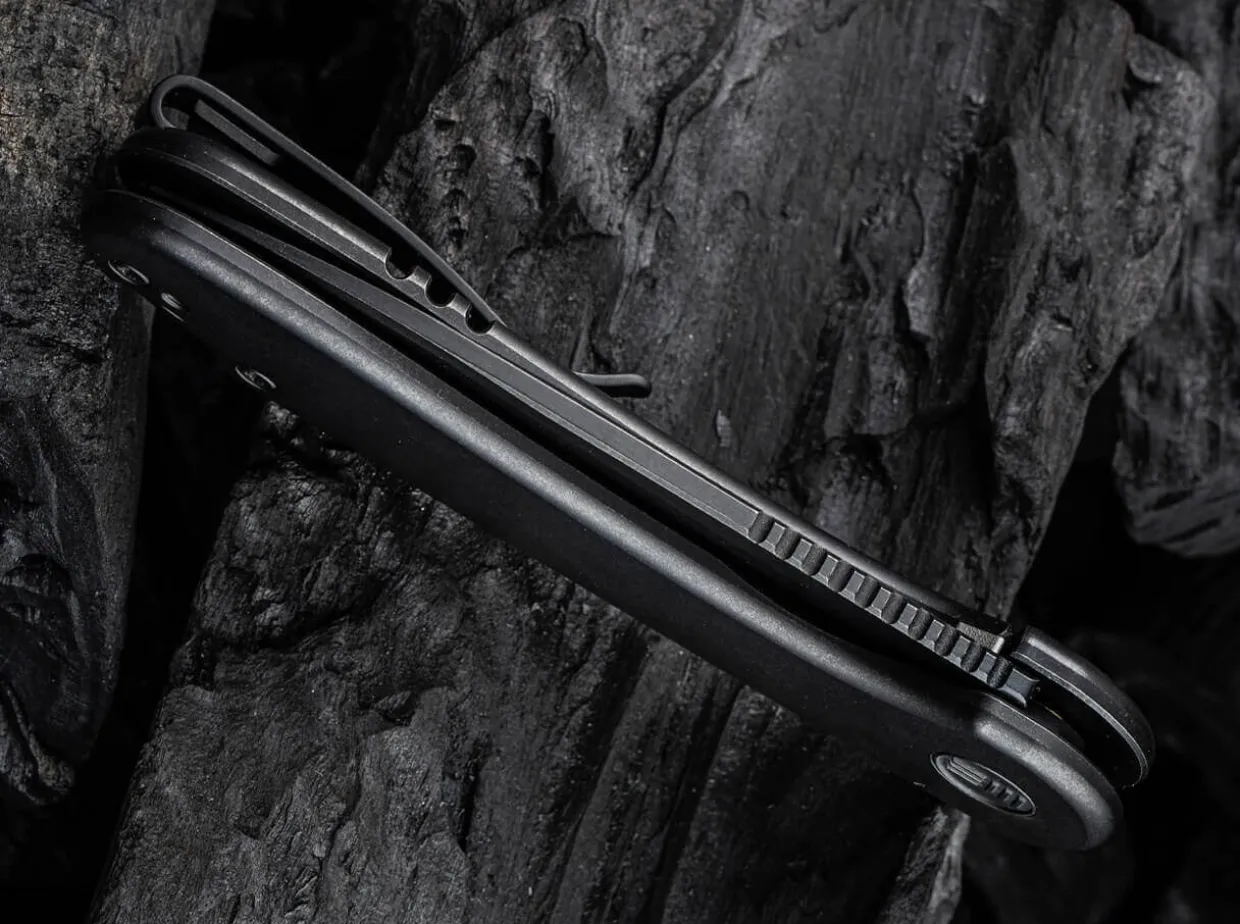 Das Elementum Von We Knife Ist Die Reinform Eines Edlen Framelock Folders. Die Pulvermetallurgische Cpm-20Cv Klinge Und Der Schwarze Titangriff Bilden Eine Unzertrennliche Einheit, Die Nur Bei Betatigen Der Flipper-Offnung Und Des Stabilen Framelocks Ihren Aggregatszustand Andert. Doch Aufgepasst: Das Elegante Messer MitClip (Tip-Up/R) Lost Eine Ungeahnte Reaktion Der Begierde Beim Betrachter Aus.