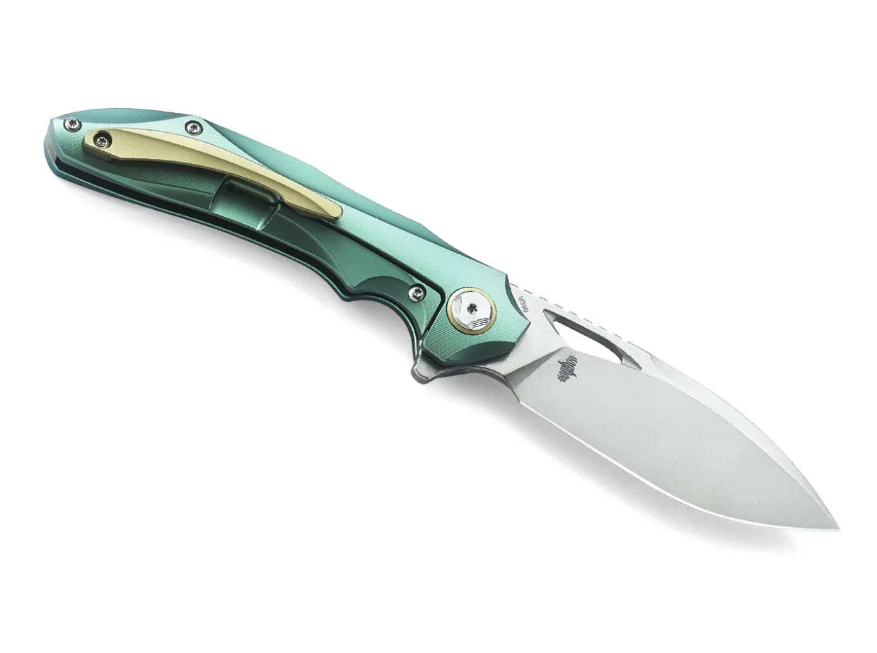 The Bestech Eskra Is A Modern Everyday Pocketknife With A Curved Drop-Point Blade Of Bohler M390. The Elaborate 3D Milled Handle Is Made From Lightweight Titanium And Anodized In Green. The Unique Millwork And Fine Texture Make For A Secure Grip. The Blade Opens With A Thumb Opening Or Flipper And Is Secured With A Sturdy Framelock. A Striking Pocketknife, Designed And Built With A Great Eye For Details. With A Clip (Tip-Up).