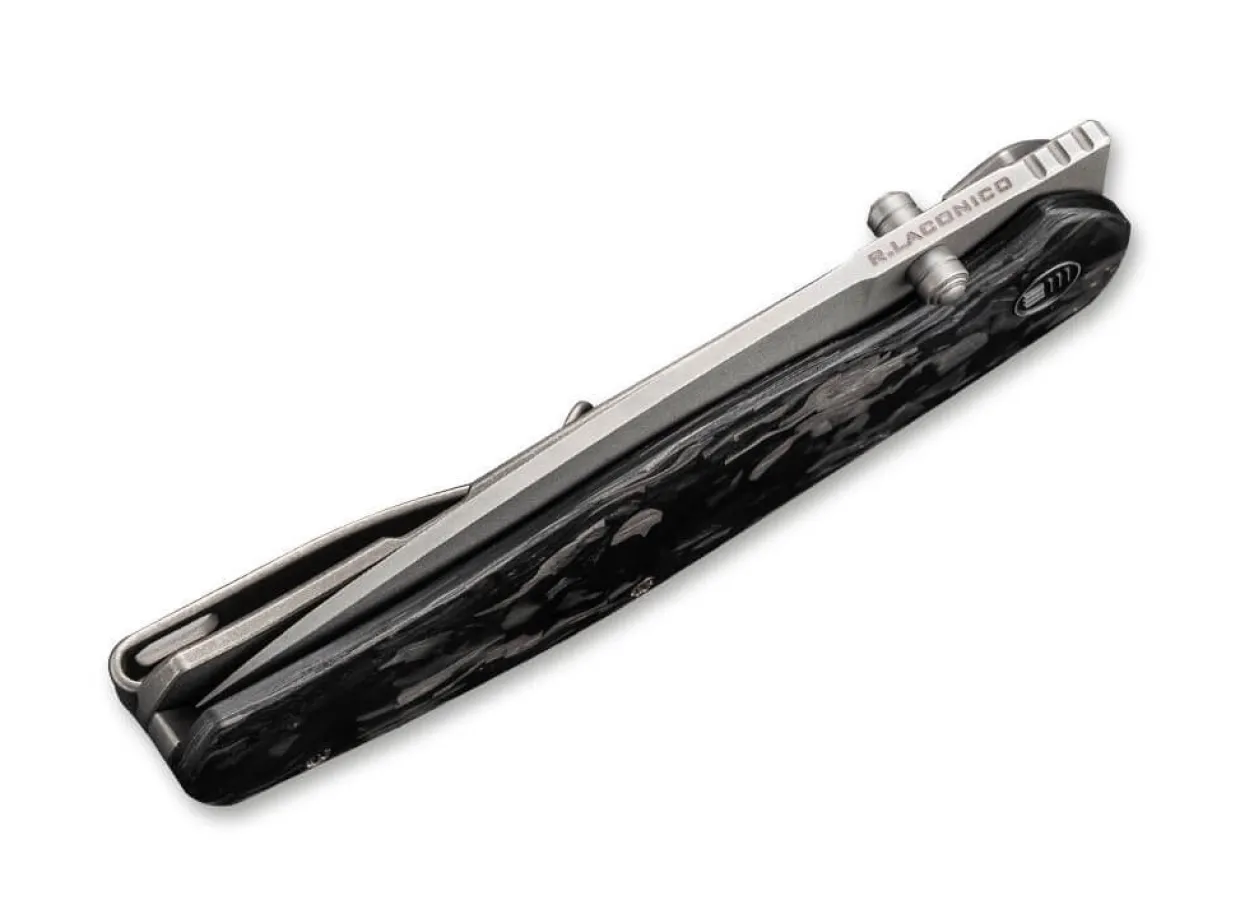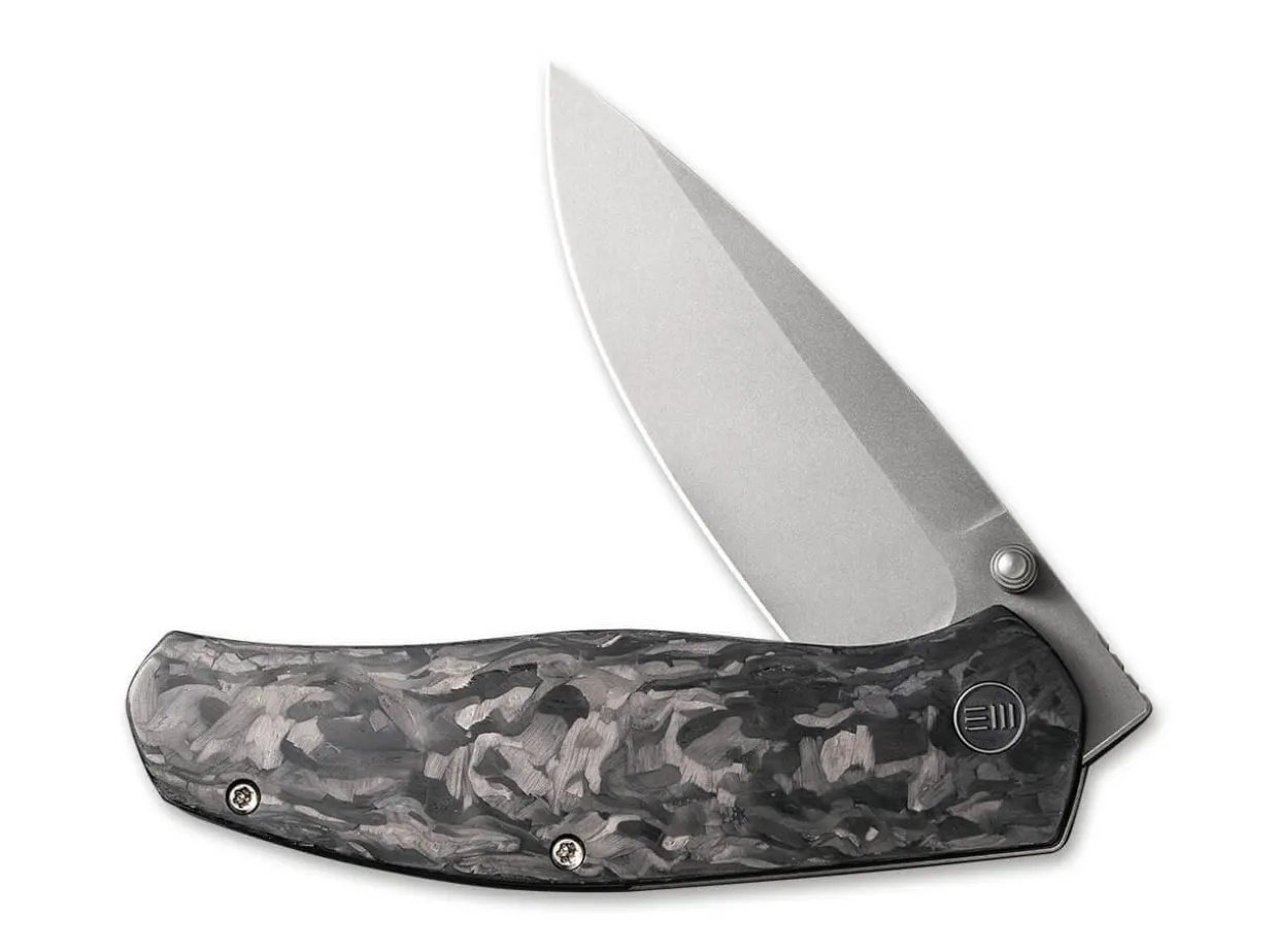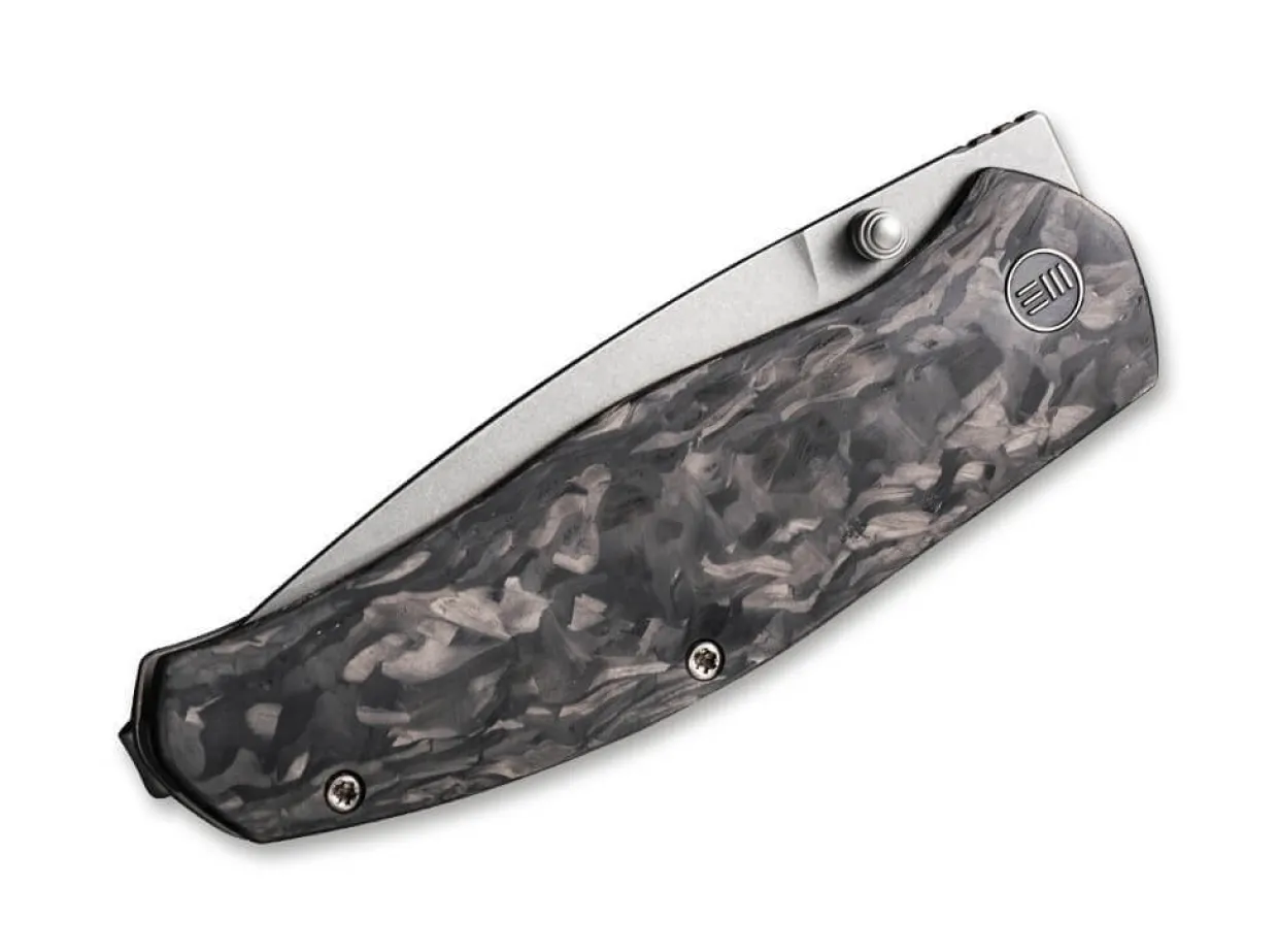 Feingeistig Und Erlesen, So Konnte Man Das Wesen Des We Knife Esprit Charakterisieren. Der Edle Framelock -Folder Offnet Die Pulvermetallurgische Cpm-20Cv Klinge Per Daumenpin, Wahrend Der Unverkennbare Materialmix Am Griff Aus Titan Und Kohlefaser Das Elegante Messer Zu Hoherem Berufen. Mit Clip (Tip-Up/R).