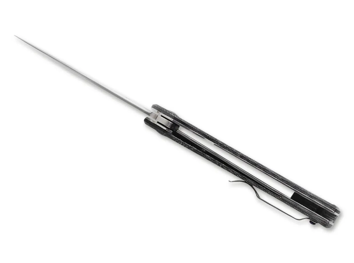 Together With Ray Laconico, Kizer Has Developed The Gemini Micarta Black, Which Is Based On Its Handmade Jasmine Folder And Underlines Its Slim Character. The Construction Of The Series Model Is Outstanding. It Has Micarta Handle Scales With A Linerlock. The Flat-Ground N690 Steel Blade Runs Smoothly On A Ceramic Ball Bearing. With A Removable Clip (Tip-Up).