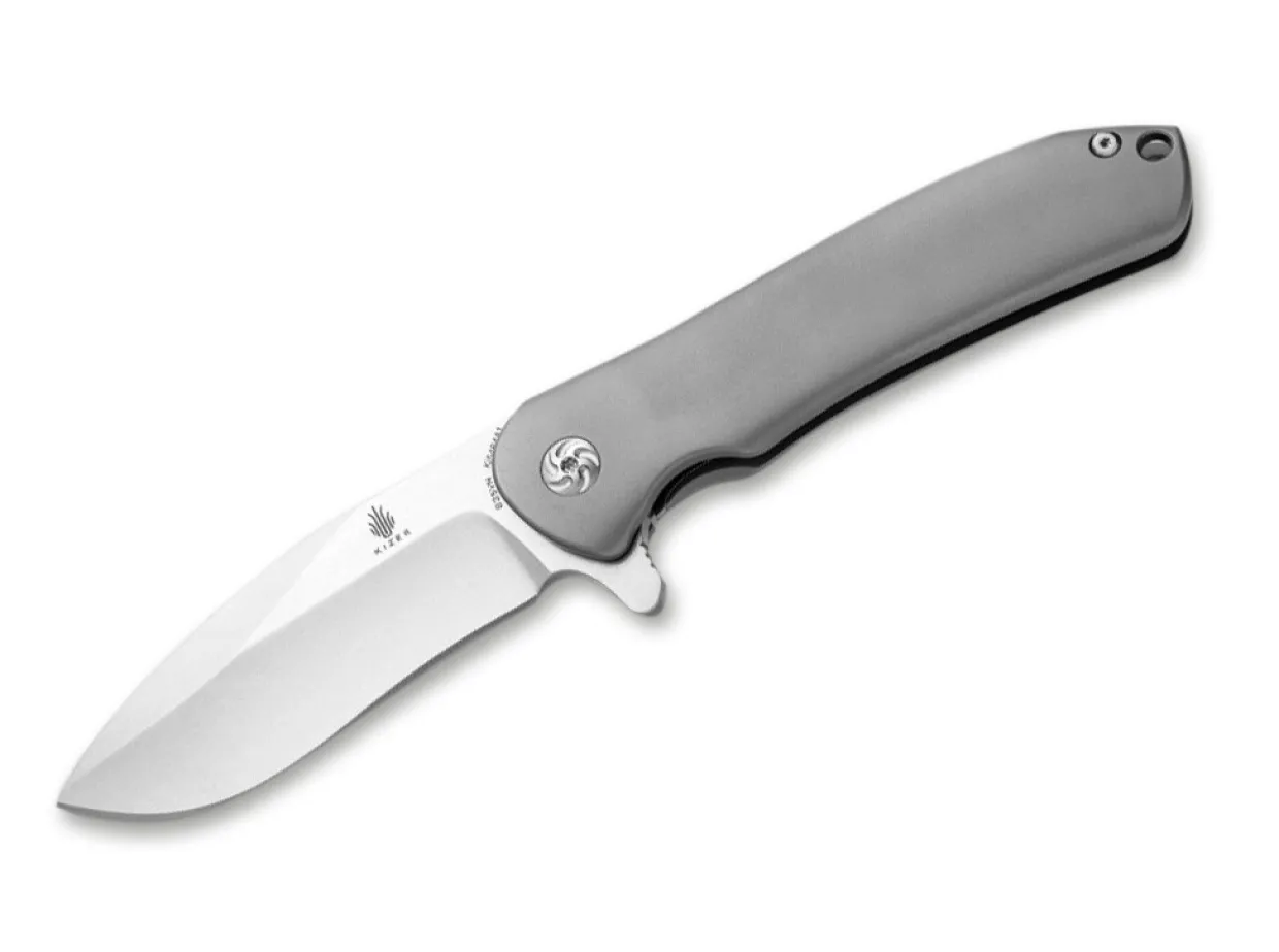 The Kizer Hustler Offers A Substantial Design From Knife-Maker Matt Cuchiara. This Heavy Duty Knife Features A Wide Drop Point Blade Made From Cpm-S35Vn Steel. Two Titanium Handle Scales Provide A Solid Framework For The Blade And A Clean, Classic Appearance. The Hustler Is Equipped With A Smooth Ball-Bearing Pivot System And A Blade Flipper For Quick And Reliable Deployment. A Frame Lock, Custom Pivot, And A Tip-Up Carry Pocket Clip Finish Off The Design. This Version Of The Hustler Features A Stonewashed Blade And A Gray Titanium Handle.