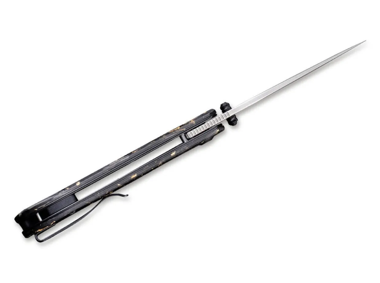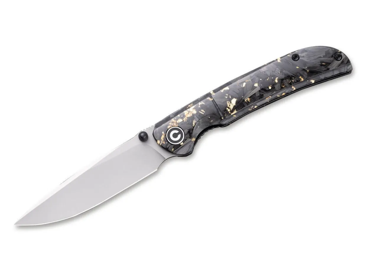 The Civi Imperium Cf Gold Is Enthroned Above All Things. Faithfully Serving The Feudal Folder, The Blade Made Of Edge-Retention Nitro-V Watches Over The Realm Of Everyday Cutting Tasks. The Thumb Stud On Both Sides And The Linerlock Are Always On Hand To Advise The Pocket Knife. The Contoured Handle Made Of Imperial Shredded Carbon Has Gold-Coloured Flakes And Gives The Knife A Stately Appearance. In Keeping With Its Status, The Civivi Imperium Is Carried Around With A Palanquin In The Form Of A Clip (Tip-Up/R).