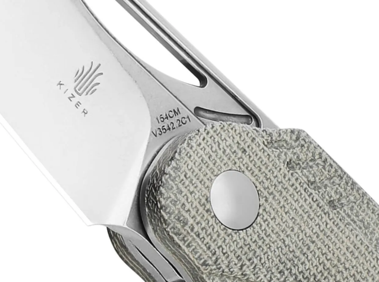 With Cunning And Diligence, The Kizer Kobold 2.0 Earns The Reputation Of A Practical Everyday Helper. The Pointed Blade Of 154Cm Takes Away The Terror Of Any Cutting Work And Allows Safe Work Thanks To Thumb Opening And Stable Liner Lock. The Playful Handle Made Of Green Micarta Is Ergonomic And Non-Slip. With Clip (Tip-Up /R).