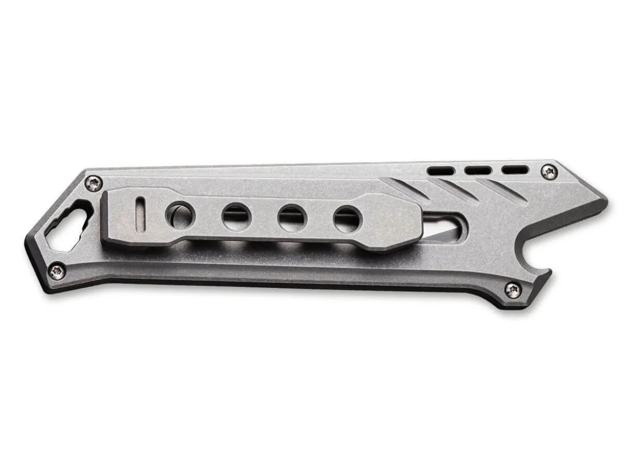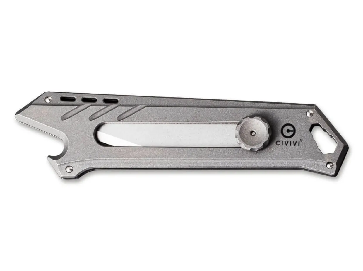 The Civivi Mandate Is A Compact Knife With An Extendable And Replaceable Blade. The Gray Handle Is Made Of Milled Titanium, And Has An Easy, One-Hand Action. When Closed, The Handy Pocket Knife Can Also Be Used As A Bottle Opener. The Lanyard Hole Also Functions As A Practical Bit Holder, Which Is Compatible With Different Sizes. The Knife Comes With Two 9Cr18Mov Blades And One Damascus Steel Blade. With Clip (Tip-Down).