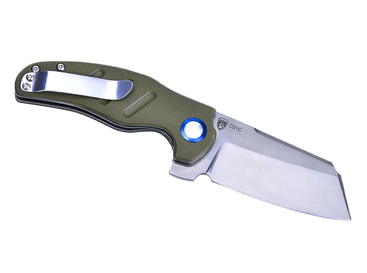 The Kizer Mini Sheepdog C01C Features A Heavy-Duty Cleaver Design From Chris Conaway Of Sheepdog Knives. Its Large Sheepfoot Style Blade Is Made From 154Cm Stainless Steel With A Two-Tone Finish. The Bulky Blade Can Be Opened Easily And Gently Thanks To The Flipper. Contoured Green G10 Handle Scales Provide A Comfortable Grip And A Resilient Build. This Knife Offers A Remarkable Combination Of Tactical Functionality And A Refined, Stylish Appearance. With Removable Clip (Tip-Up).