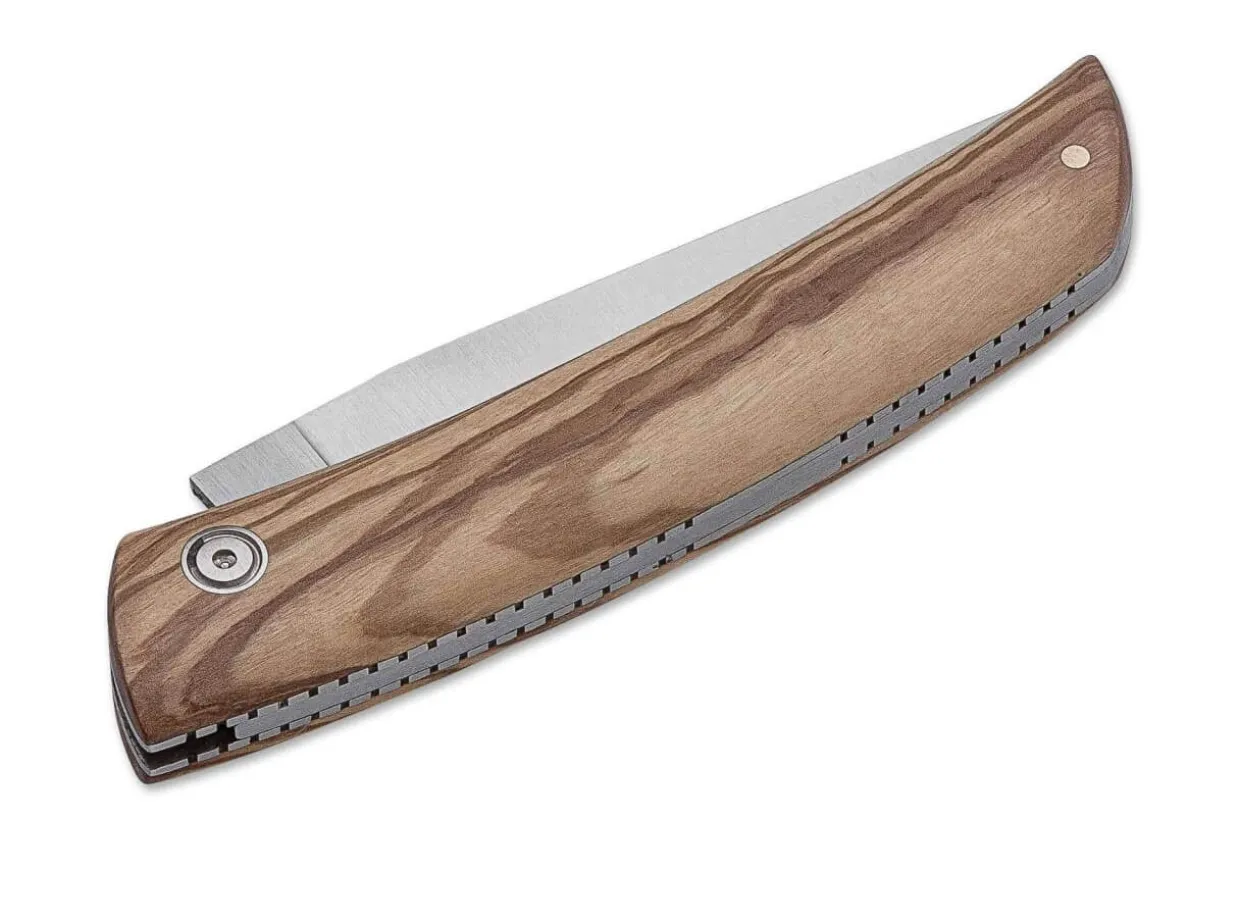 The Np Olive From Muela Compels With Its Slim, Flowing Lines And The Blade Shape Elicited By The Traditional Navajas As An Elegant Illustration Of The Knife’S Origins. The Stainless Steel Liners Support The Softly Contoured Olive Wood Scales, Giving The Np A Silky-Smooth Feel. The Liners In The Handle Spine Also Feature Decorative Filework, Further Accentuating The Elegance Of The Design. The Blade Is Made From 4116 Steel And Features A Satin Finish.