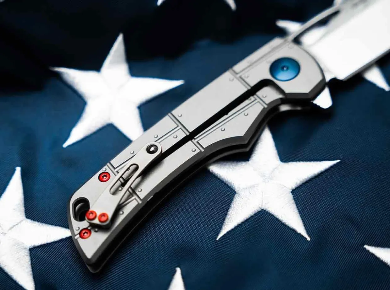 Another Highlight Is The Titanium Handle, Which Replicates The Studded Light Metal Plates Of The Aircraft In Great Detail. The Blue Blade Axle Screw, Which Bears The Silver Star Of The Us Army, And The Red Anodised Screws, Which Are Based On The Colour Scheme Of The Tail Rudder, Are Striking. Extreme Reliability Is Promised By The Titanium Framelock With A Stainless–Steel Inlay, Which Holds The Blade Securely In Place Even During Difficult Work. Despite The Clear Lines, The Handle Lies Comfortably In The Hand Thanks To Ergonomic Cutouts. The Titanium Clip Is Machined From Solid And Allows For Tip-Up (R) Carry, While The Lanyard Hole Offers Further Attachment Options. A Must For All Knife Collectors And Friends Of Historic Aircraft. Supplied With A High-Quality Nylon Pouch For Storage.