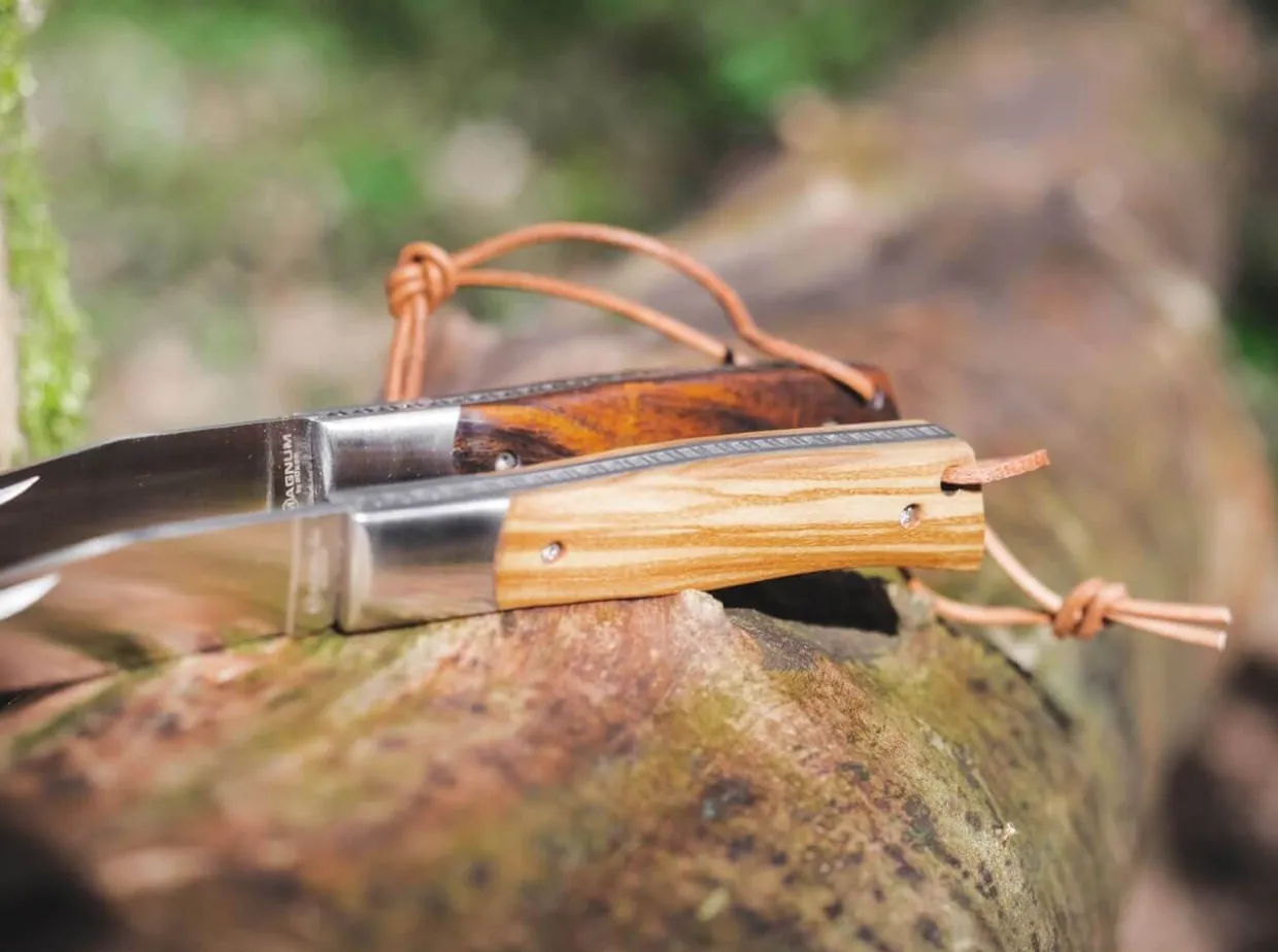The Magnum Parzival Combines The Traditional Shape And Construction Of A L’Alpin Pocket Knife With Modern Materials And Details. The Stainless 7Cr17Mov Slipjoint Blade Is Classically Opened By Nail Nick And Does Not Lock. The Back Spring Is Equipped With An Elaborate Decorative Filework, Which Also Acts As A Support For The Thumb And Thus Increases The Work Safety. The Noble Handle Scales Are Made Of Olive Wood, The Characteristic Bolsters Are Made Of Stainless Steel. A Lanyard Hole With A Short Leather Strap Completes The Equipment Of The Magnum Parzival.