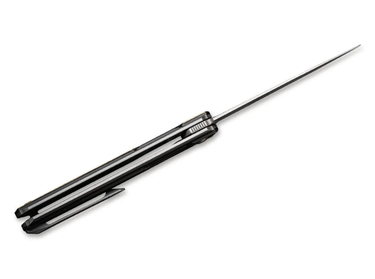 Die Geradlinigkeit, Mit Der Ostap Hel Seine Messer Entwirft, Findet Im We Knife Peer Ihre Perfekte Umsetzung. Der Schlanke Folder Bekennt Sich Zu Seinen Markanten Zugen Und Bildet Optisch Einen Guss Aus Der Pulvermetallurgischen Cpm-20Cv Klinge Und Dem Mit Messingschalen Besetztem Titangriff In Edlem Grau. Flipper Und Linerlock Fugen Sich Formschon In Die Linienfuhrung Des Messers Und Werden Durch Den Kantigen Clip (Tip-Up/R) Formschon Untermalt.