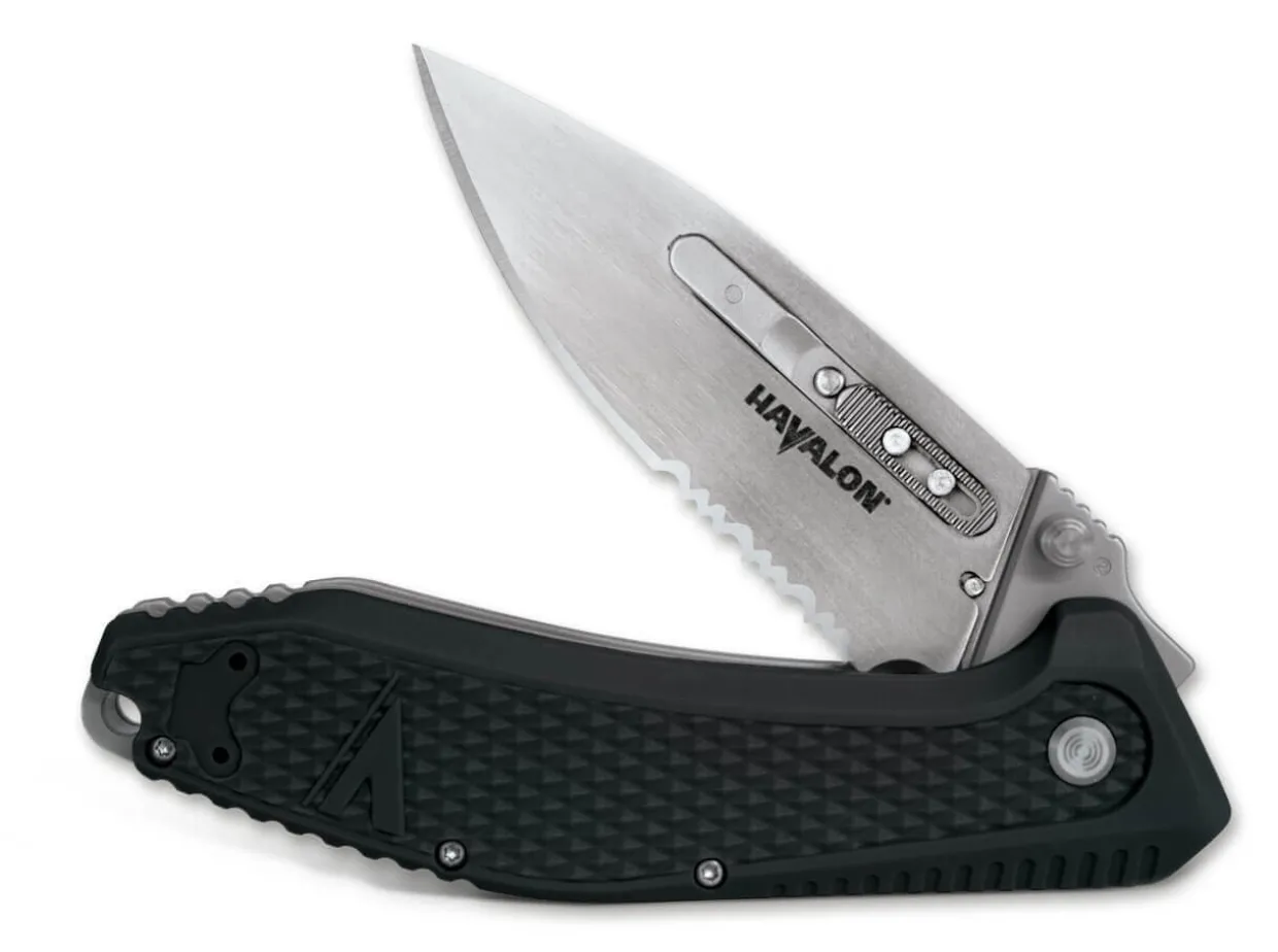 Havalon Ist Bekannt Fur Seine Innovativen Messer Mit Wechselklinge. Der Neueste Coup Des Us-Amerikanischen Herstellers Ist Das Praktische Redi, Das Als Federunterstutzter Edc-Folder Mit Zwei Wechselbaren Droppoint-Klingen Aus Widerstandsfahigem Aus-8 Ausgestattet Ist. Geoffnet Wird Das Innovative Taschenmesser Per Daumenpin, Entriegelt Wird Die Klinge Mit Dem Patentierten Redi Lock System. Sicheren Halt Verspricht Der Rutschfeste Griff Aus Polymer. Lieferung Mit Flachschliff-Klinge, Wellenschliff-Klinge, Etui Und T5 Torx.