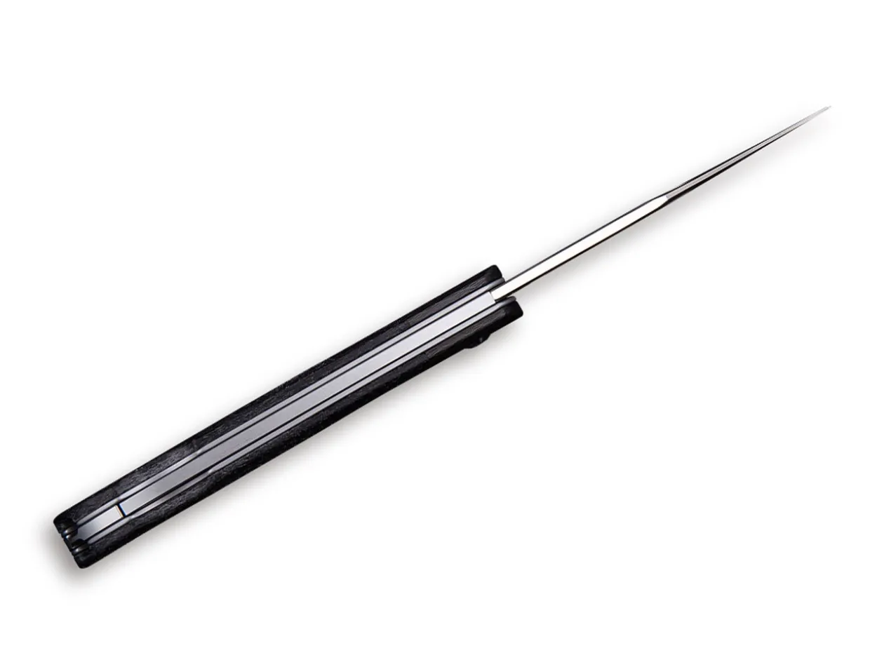 The Rustic Gent C914D Is We Knife’S Continuation Of The Civivi Line, A Classic Edc Compatible Backlock Pocket Knife Made To Fulfill The Usual High Production Standards And Offered At A Very Attractive Price Point. The Stainless Steel Liner Sits In Black Micarta Scales, Which Are Paired With Carbon Fiber Bolsters. The D2 Blade Offering Good Edge Retention Opens Manually With A Nail Nick And Locks With A Backlock. Includes Leather Sheath With Clip.