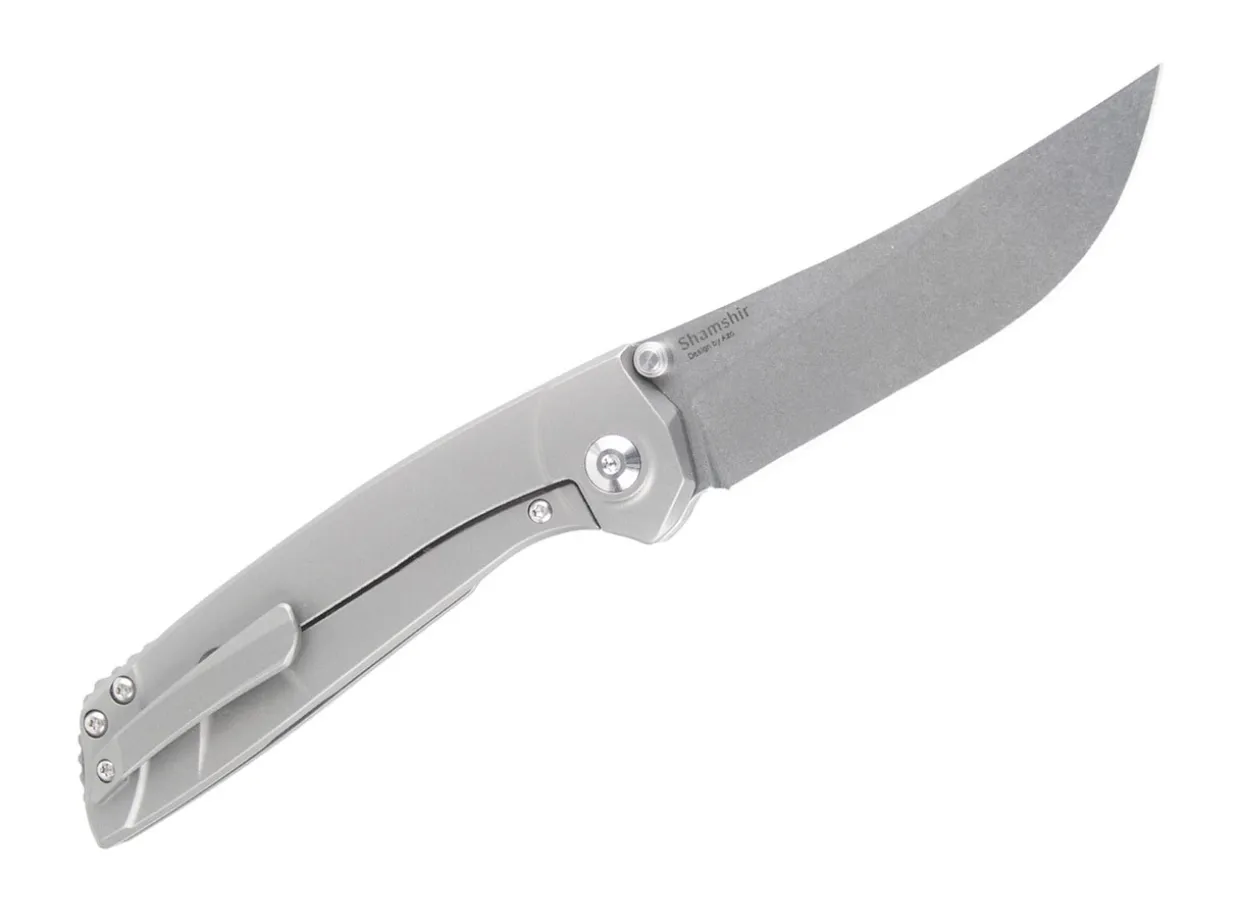 The Kizer Shamshir Has Its Persian-Style Cpm-S-35Vn Blade To Thank For Its Reliable And Speedy Cutting Performance. The Ball Bearing Mounted Blade Can Be Deployed Quickly And Smoothly Using The Thumb Stud. A Stainless Steel Frame Lock Locks The Blade Firmly In Position Allowing Safe Handling. The Plain Titanium Handle Sits Comfortably In Your Hand And Includes A Lanyard Hole And Detachable Anodized Titanium Clip (Tip-Up).