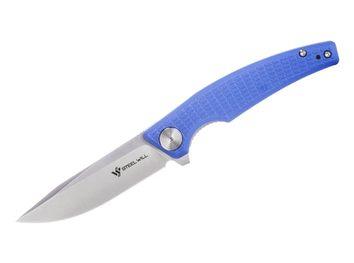 The Steel Will Shaula Is A Lightweight Pocketknife For Everyday Use Focusing On Ergonomical Aspects. The Blue Handle Scales Of Finely Textured G10 Offer A Very Secure Grip And Ensure Safe And Precise Cuts. The Stainless D2 Blade Has An Elegant Satin Finish. The Blade On Ball Bearings Is Opened With A Flipper And Secured With A Sturdy Linerlock. With A Lanyard Hole And Deep-Carry Clip (Tip-Up).