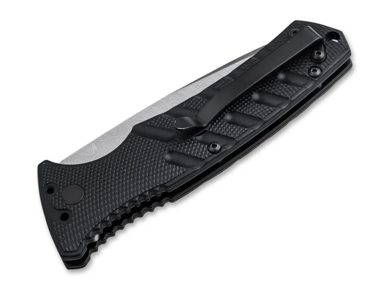 The Popular Strike Series Is Known For Its Robust Automatic Knives, Which Are Completely Convincing For Everyday Use As Well As For Emergency Forces. Building On This Success, Boker Plus Presents A Noble Variant With A Blade Made Of 110-Layer Damascus. The Slim, Ergonomically Shaped Handle Is Built On Solid Steel Plates That Are Trimmed With Easy-Grip, Lightweight Scales Made Of Black Aluminium. Deep Jimpings In The Pronounced Thumb Recess Also Support The Secure Handling Of The Automatic Knife. The Drop-Point Blade With Decorative Ricasso Is Opened Bya Push Button And Held In Place By The Robust Button Lock, Which Is Given Additional Security By The Slider. On The Back Is A Convertible Clip (Tip-Up/Tip-Down). Supplied With A High-Quality Nylon Pouch For Storage.