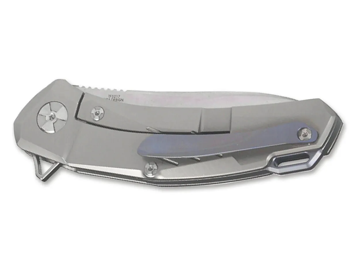 Das Defcon Ulu Erscheint Im Stilvollen Design. Die Leicht Nach Oben Geschwungene Droppoint-Klinge Harmoniert Mit Der Gegensatzlichen Krummung Des Griffs Und Gibt Dem Gesamtprofil Des Messers Eine „S-Form”. Die Satinierte Klinge Ist Aus Verschleisfestem D2 Stahl Gefertigt Und Wird Per Flipper Reibungslos Geoffnet. Die Detaillierungen Des Griffs Verleihen Dem Messer Ein Fast Zerkluftetes, Eckiges Aussehen, Das Ansprechend Aussieht Und Sich Gut Anfuhlt. Er Ist Aus Eloxiertem Titan Gefertigt Und Verfugt Uber Eine Fangriemenose. Mit Deep-Carry-Clip (Tip-Up).