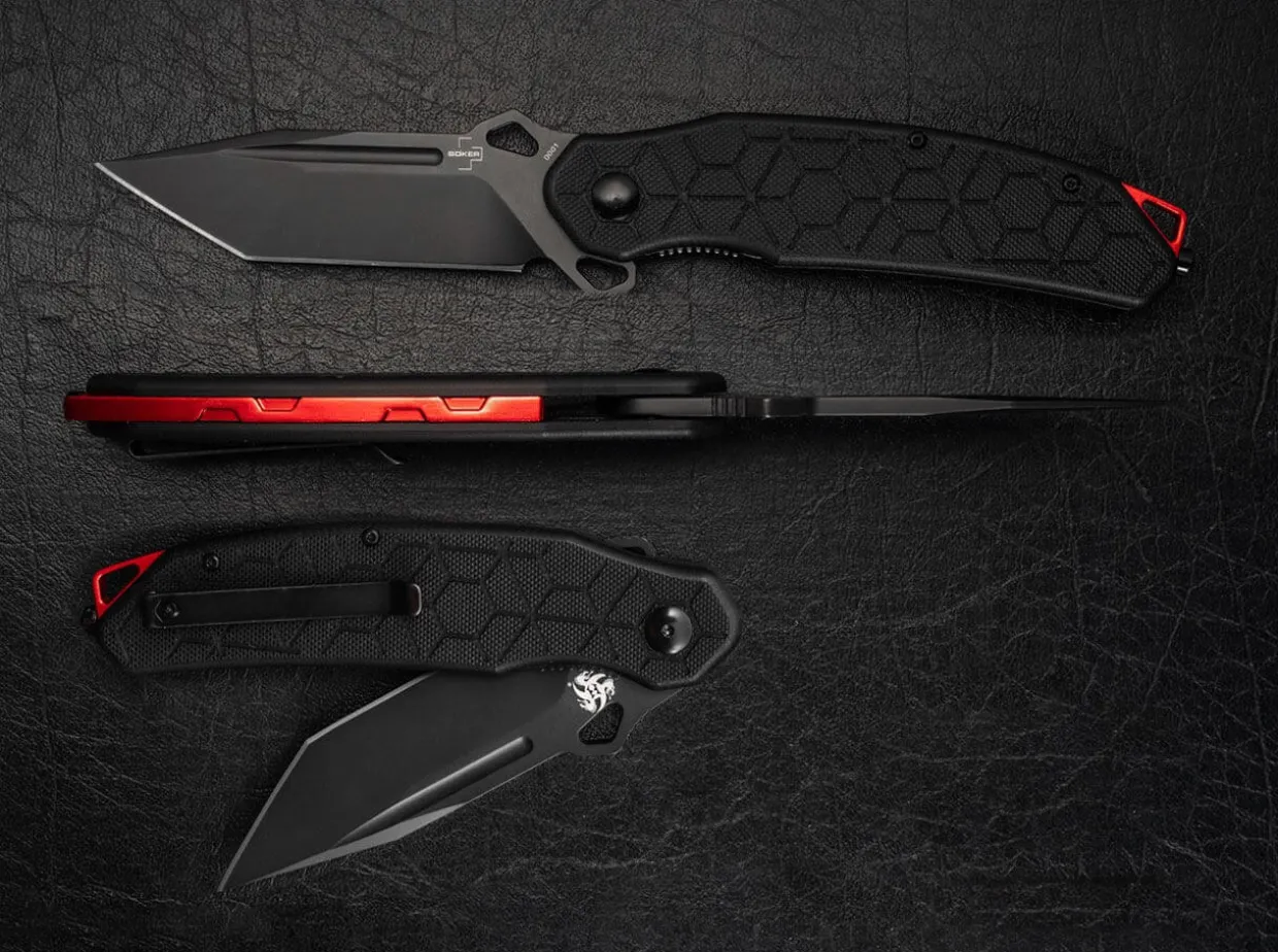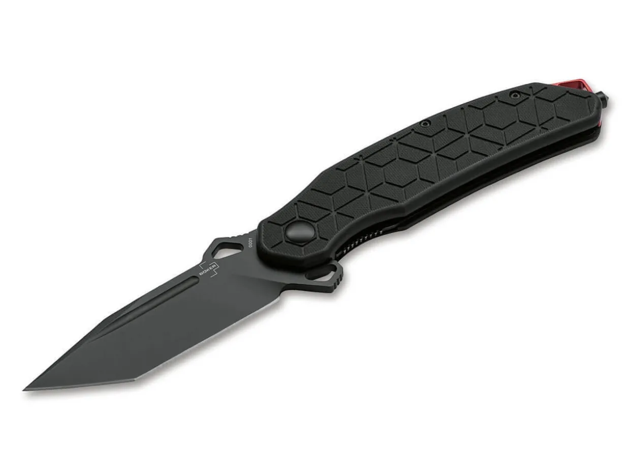 Her Modern Designs Combine Her Experience From All These Fields And Make The Yokai An Absolutely Exceptional Knife. The Modified Tanto Blade Made Of D2 Has A Resistant Black Coating, Is Opened By A Flipper And Is Reliably Secured By A Sturdy Linerlock. The Handle Scales, Textured In A Modern Honeycomb Pattern, Fit Perfectly In The Hand Even In Bad Weather, And The Ribbed Thumb Ramp And Ergonomic Index Finger Recess Provide Additional Grip. The Red Aluminum Spacer Provides A Colourful Accent. With Lanyard Hole, Glass Breaker And Practical Clip (Tip-Up/R). Supplied In A High-Quality Nylon Case For Storage.