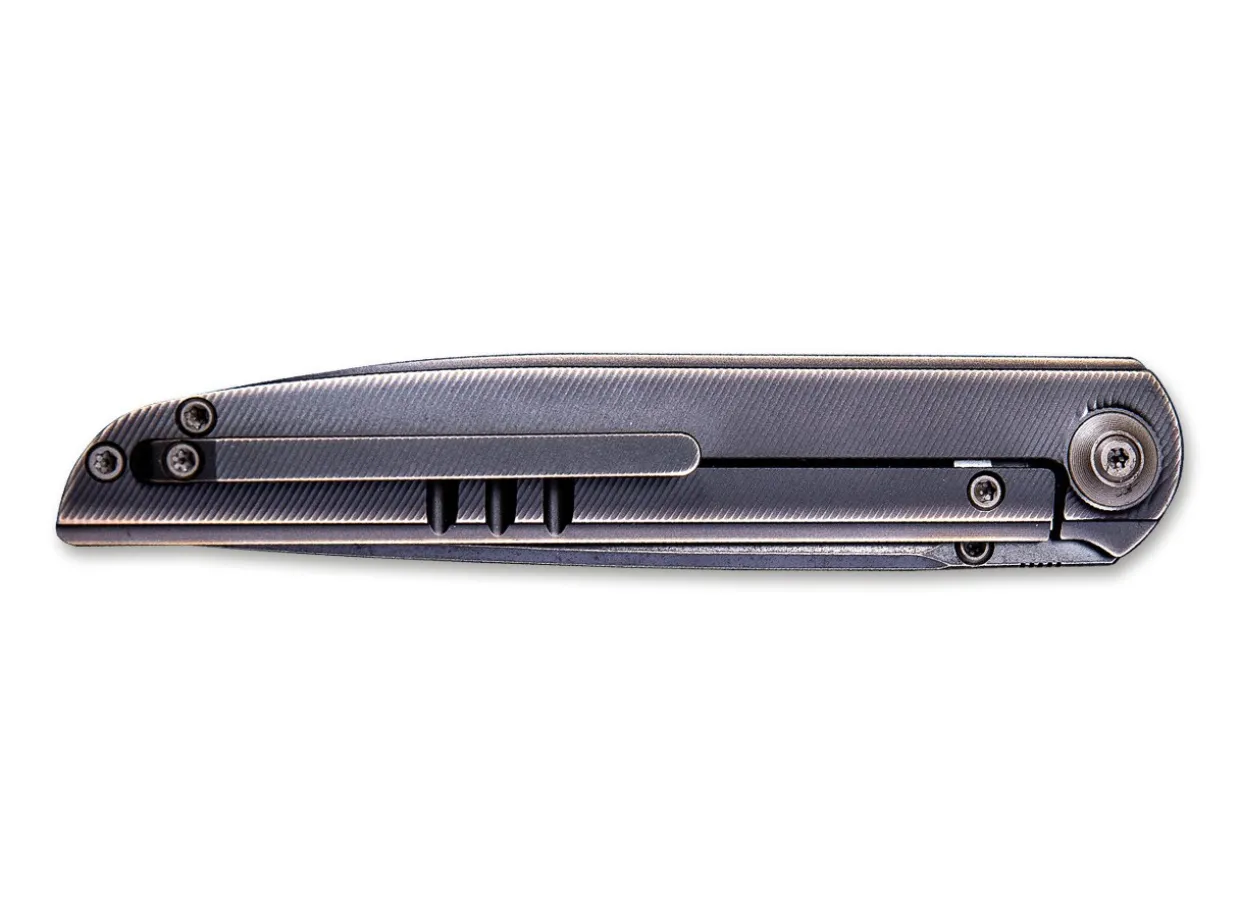 A Slender And Elegant Framelock Pocketknife Featuring Many Elements Of A True Gentleman Folder Despite Its Impressive Size. In Keeping With The High Standard Of We Knife, The 618 Has A Blade On Ball Bearings, Made From Powder-Metallurgical Bohler M390. The Solid Milled Clip, The Screws And The Pivot Cap Also Consist Of Titanium.