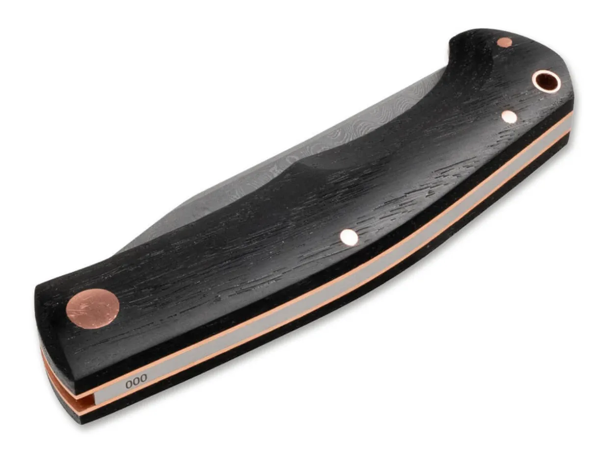 The Decorative Copper Rivets Form A Colorful Contrast To The Dark Handle Scales, Which Is Further Emphasised By The Liners Also Made Of Copper. The Practical Lanyard Hole Is Also Reinforced With A Copper Bushing. Handmade In The Boker Knife Manufactory In Solingen And Strictly Limited To 999 Pieces Worldwide. Supplied With A Noble Floating Display, A Certificate Of Authenticity And An Individual Serial Number.