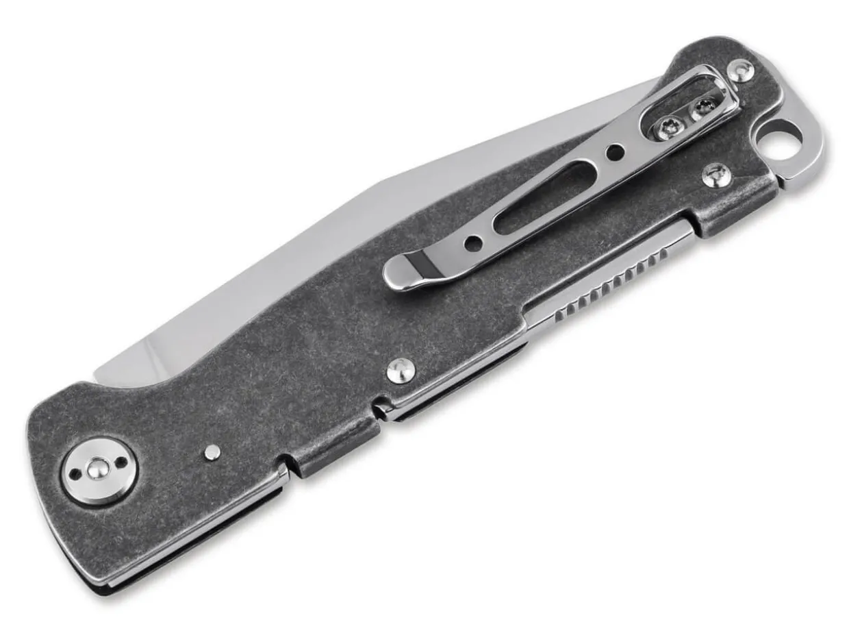 The Tidy Bker Plus Atlas Is A Reliable Pocket-Knife With A Stainless–Steel Handle In A Gritty Dark Stonewash Finish. The Minimalist Construction Is Exceedingly Robust And Makes The Handy Knife The Perfect Companion In All Situations. The Satin-Finished Clip-Point Blade Made Of D2 Is Opened By A Nail Nick, While The Locking Is Taken Over By The Sturdy Backlock. Supplied With A Tip-Up Clip (R).