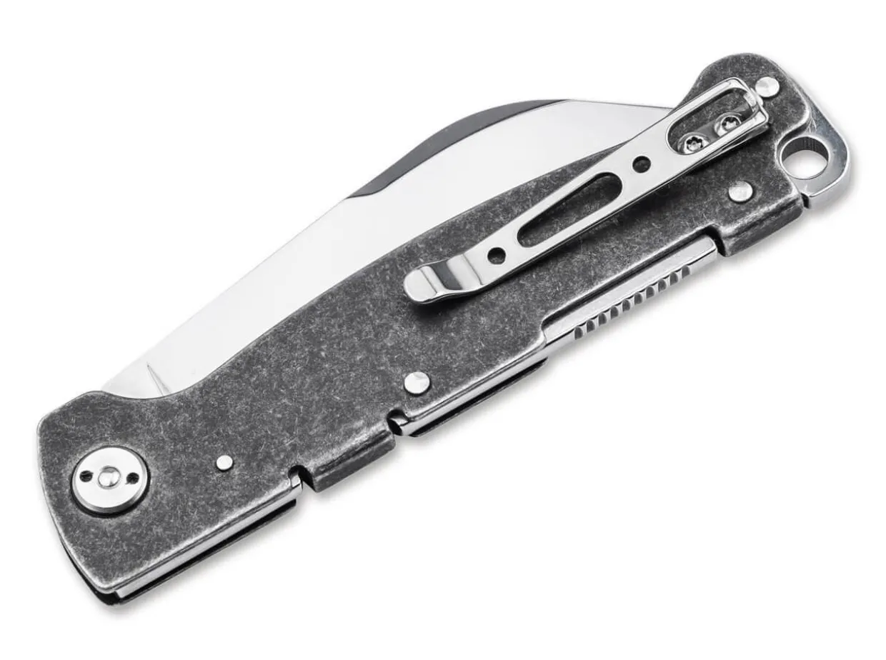 The Tidy Boker Plus Atlas Is A Reliable Pocket-Knife With A Stainless–Steel Handle In A Gritty Dark Stonewash Finish. The Minimalist Construction Is Exceedingly Robust And Makes The Handy Knife The Perfect Companion In All Situations. The Satin-Finished Sheepfoot Blade Is Opened By A Nail Nick, While The Lock Is Taken Over By The Sturdy Backlock. Supplied With A Tip-Up Clip (R).