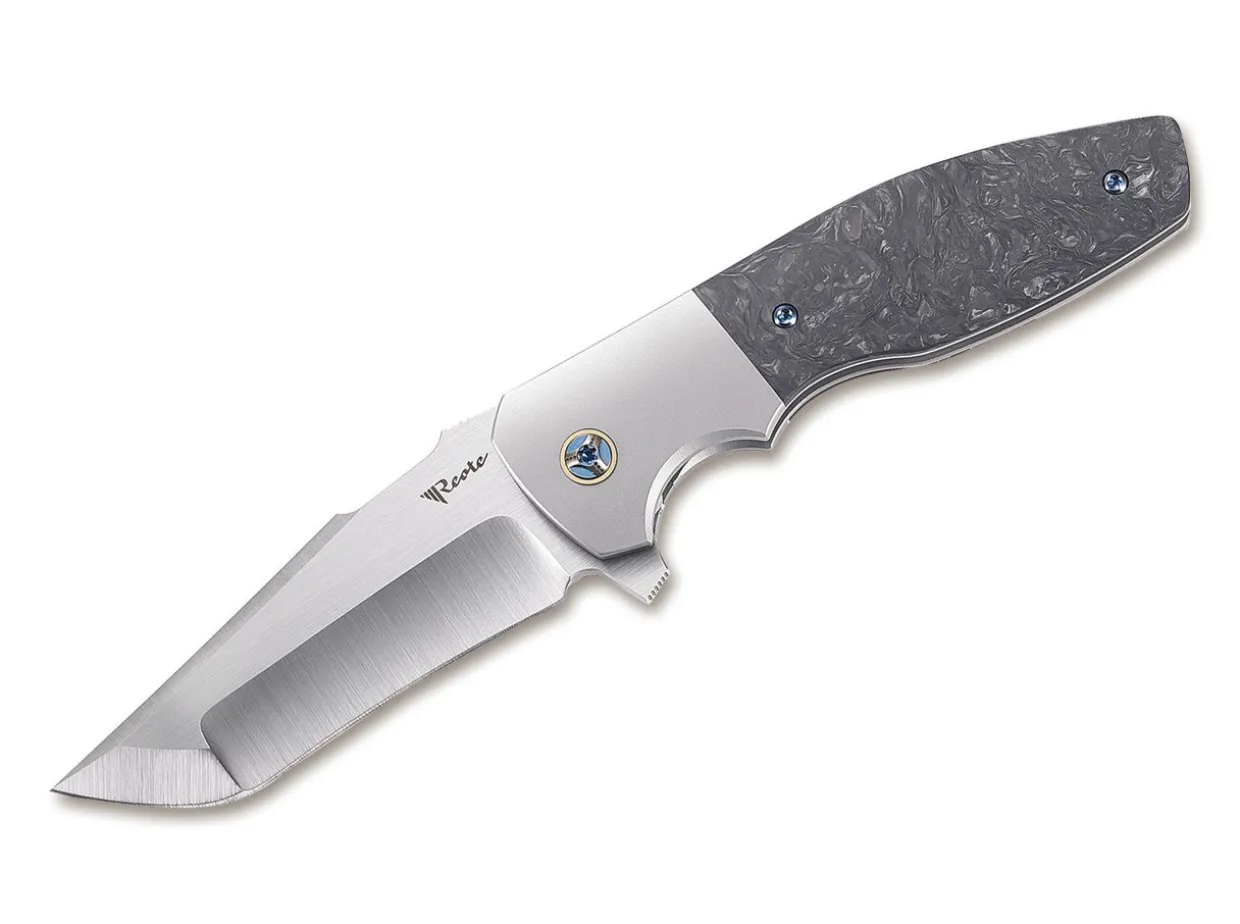 The Reate Augustus Was Designed By The Canadian Knifemaker Kirby Lambert. It Has A Satinized Blade On Ball Bearings Made From Powder-Metallurgical Bohler M390, Which Opens With A Flipper. The Titanium Framelock Is Built With An Integrated Bolster And Encased In Scales Of Wild Carbon Fiber. The Spacer And Clip (Tip-Up/R) Are Also Made From Titanium.