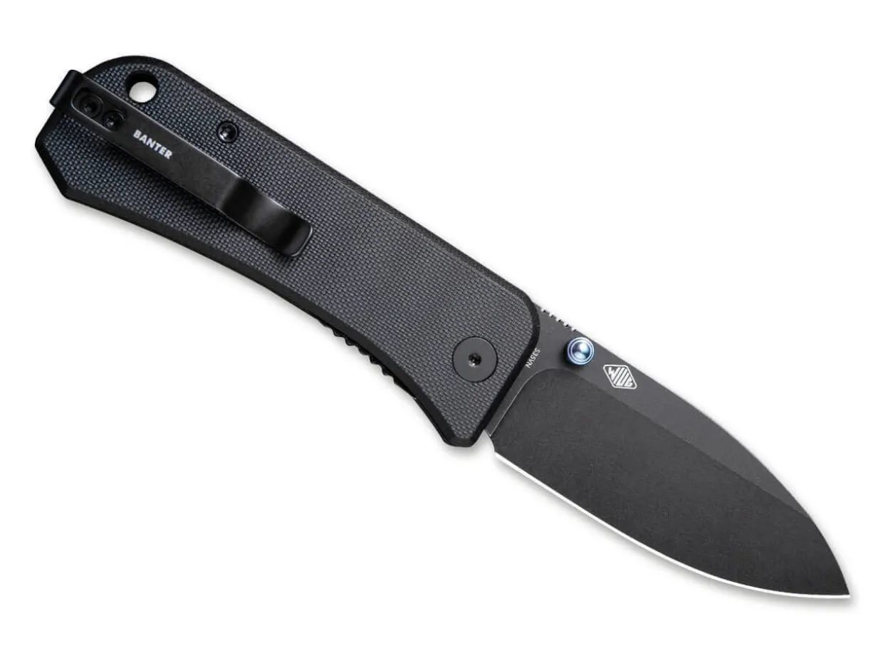 The Dependable Banter From We Knife Is Made For All Kinds Of Fun. But This Pocket Knife Designed By Ben Peterson Does Not Look For Its Kicks In The Basement, But Makes A Beeline Straight For Its Next Outdoor Adventure. Its Extremely Sharp Blade Made From Powder-Metallurgical Cpm-S-35Vn, Which Offers Good Edge Retention, Can Only Raise A Tired Smile For The Everyday Tasks At Hand. It Features A Nonslip, Black G10 Handle, A Thumb Stud And A Linerlock. With Lanyard Hole And Clip (Tip-Up).