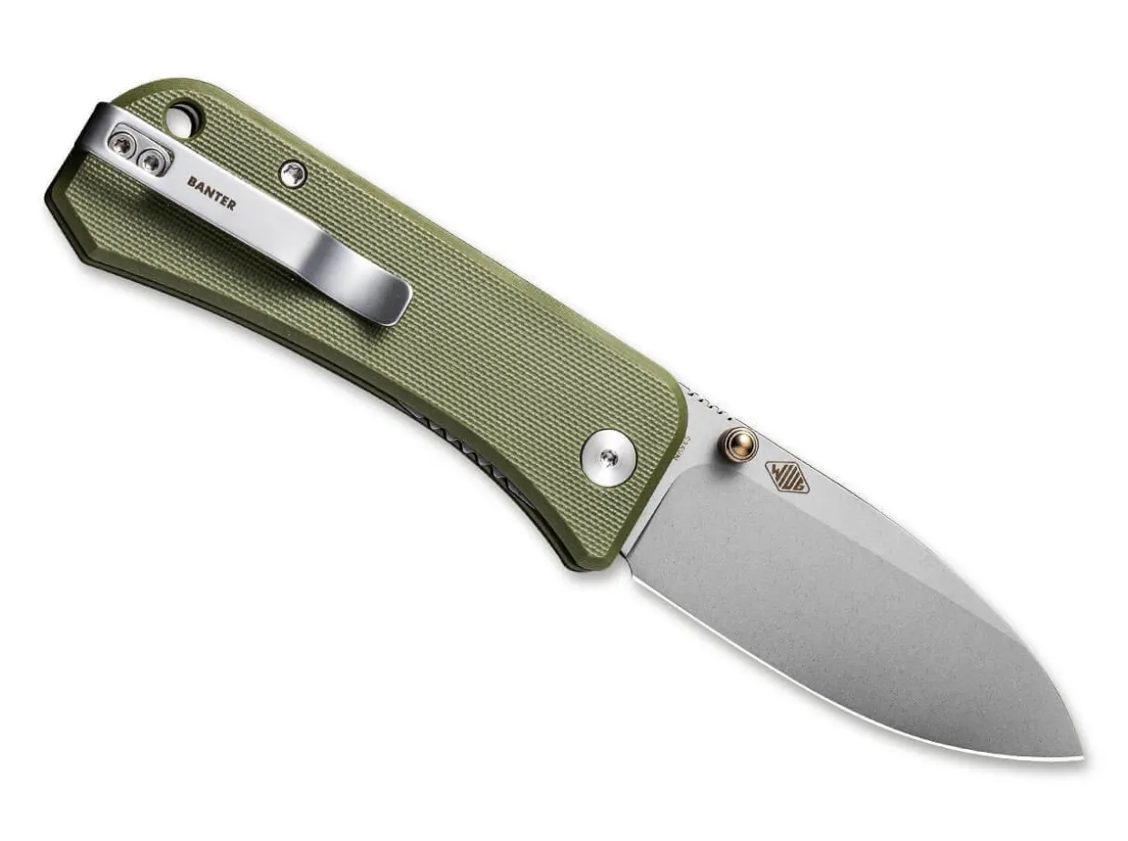 The Reliable Banter From We Knife Is Up For Any Kind Of Fun. The Pocket Knife Designed By Ben Peterson Doesn’T Go To The Cellar For A Laugh, But Straight To The Next Outdoor Adventure. Its Extremely Sharp And Cutting Blade Made Of Powder Metallurgy Cpm-S-35Vn Has Only A Weary Smile For The Daily Tasks At Hand. It Has A Non-Slip Handle Made Of Green G10, A Thumb Stud And A Linerlock. Supplied With A Lanyard Hole And A Clip (Tip-Up).