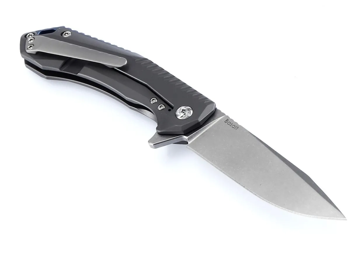 The Kizer Basalt Is A Titanium Framelock Knife With A Blade On Ball Bearings And A Reversible Clip (Tip-Up/L-R).