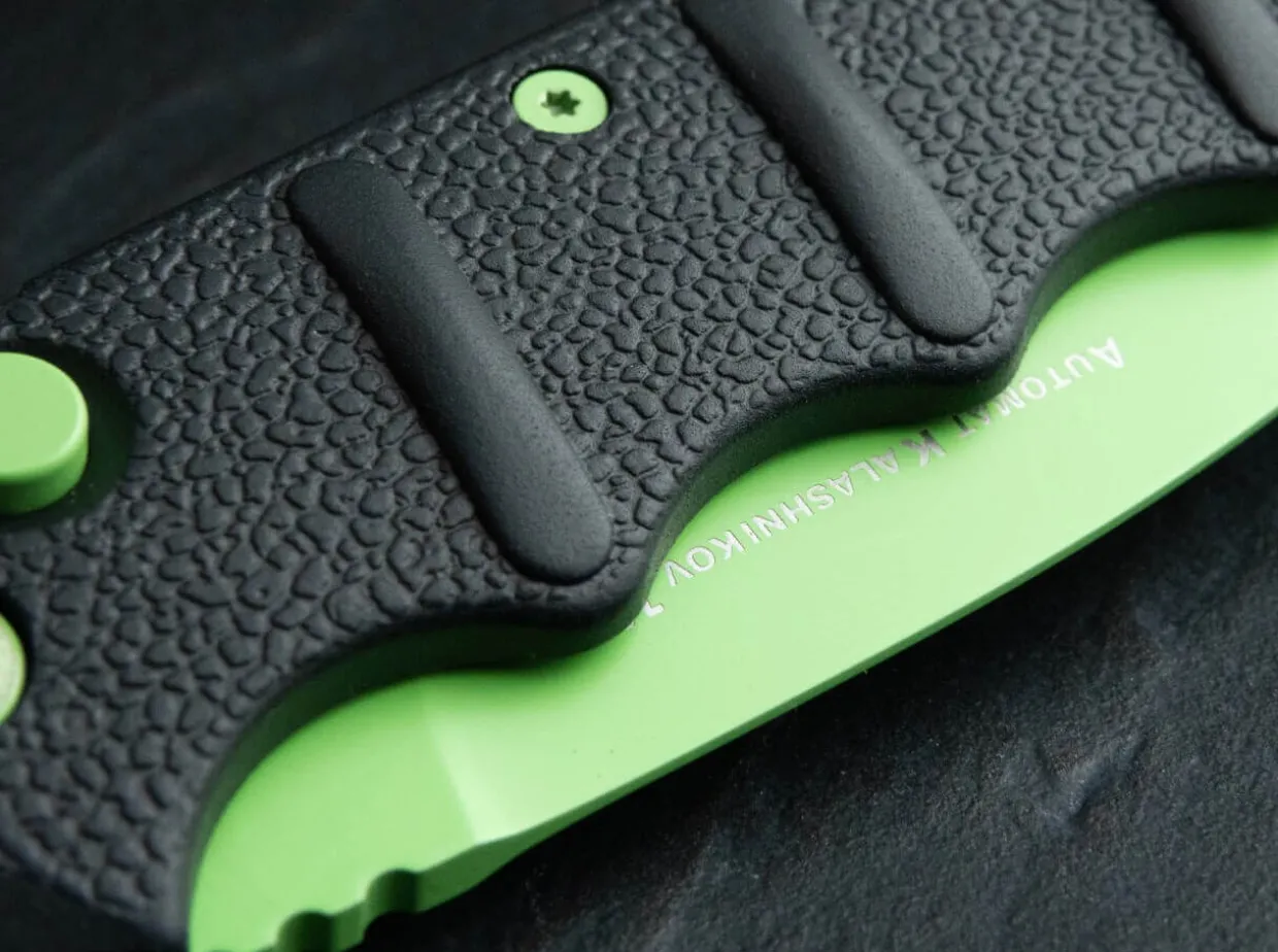 The Boker Plus Aks-74 From The Kalashnikov Series Is Certainly One Of The Most Popular Models In Our Range And Has Been Produced In Numerous Different Variants In Recent Years. Blade And Screws Of The Exclusive Green Mamba Edition Have A Acid Green Coating. The Black Aluminium Handle Is Reminiscent Of The Bayonet Of The Famous Assault Rifle And The Raised Structural Tracks Offer A Secure Grip In Any Situation. The Green Blade Is Made Of D2 Stainless Steel And Can Be Secured With A Slide Lock In Addition To The Push Button. With Clip (Tip-Up).