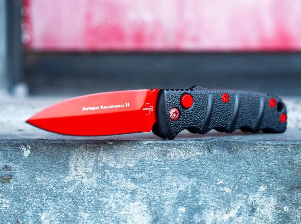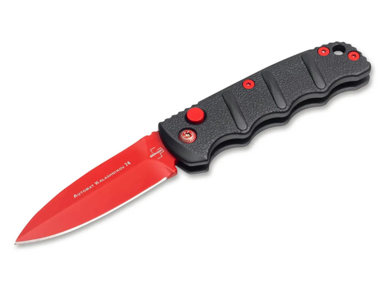 In Cooperation With The American Knife Dealer Blade Hq, This Exclusive Special Model From The Kalashnikov Series Has Been Created And Succeeds The Popular Boker Plus Bhq Aks-74 Spearpoint Black Widow As A Little Brother. Blade And Bolts Of The Exclusive Black Widow Edition Are Provided With A Red Coating. The Black Aluminum Handle Is Strongly Reminiscent Of The Bayonet Of The Famous Assault Rifle And The Raised Textured Panels Provide A Secure Grip In Any Situation. The Red Spearpoint Blade Is Made Of Aus-8 Stainless Steel And Can Be Secured By Slide Lock In Addition To The Push Button. With Catch Strap Eyelet And Practical Deep Carry Clip (Tip-Up).