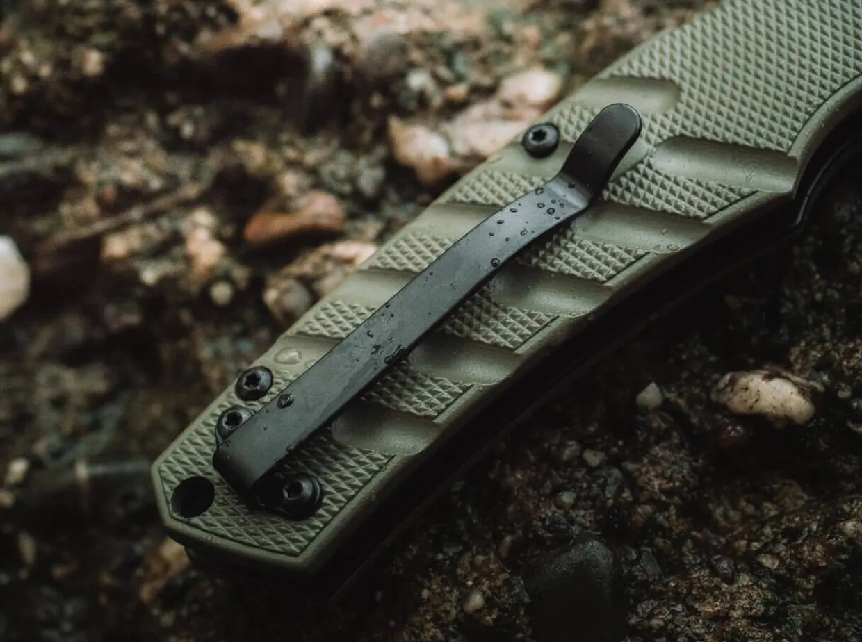 Deep Jimpings In The Well-Defined Thumb Rise Aid Safe Handling. A Cleanly Latching Safety Slide Against Accidental Triggering Acts As Additional Security When The Knife Is Closed. This Exclusive Version Features A Sand-Colored Coating On The Tanto Blade, Which Is Made From The Japan-Developed Aus-8. The Handle Scales Are Colored In Od Green. With A Reversible Clip (Tip-Up / Tip-Down) And A High-Quality Nylon Case For Storage.