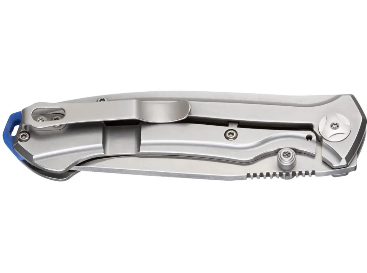 A Strong Knife Which Redefines Sturdiness. The Hollow-Ground Blade Is Made From 440A Steel And The Handle With Frame Lock Is Also Made From Sturdy Stainless Steel. The Blade Can Be Used With Both Hands And The Clip Keeps The Knife In Reach. Spacer Made From Blue G-10 With Lanyard Hole.