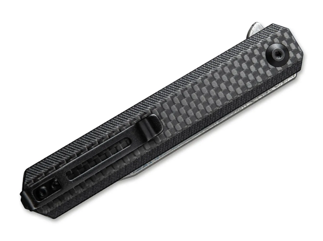 The Civivi Chronic Has An Ultra- Slim Design With A Narrow, Hollow Ground Damascus Steel Blade. The Satin-Finish, Clip Point Blade Opens With A Flipper And Makes Quick Work Of Slicing Tasks. A Stainless Steel Linerlock Locks The Blade Securely In Place. The Simple, Black G10 Handle With A Carbon Fiber Overlay Completes The Look Of The Knife. With Lanyard Hole And Detachable Clip (Tip-Up).