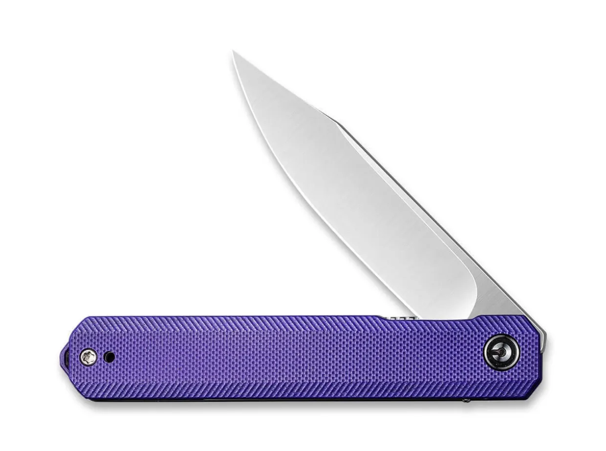 The Civivi Chronic Has A Very Slim Design, With A Slender, Hollow-Ground Blade Made Of 9Cr18Mov. The Satin-Finished Clippoint Blade Is Opened By A Flipper And Enables Fast Work. The Stainless Steel Linerlock Ensures The Blade Is Securely Locked In Place. The Plain Handle Made Of Purple G10 Completes The Look Of The Knife. Supplied With A Lanyard Hole And A Detachable Clip (Tip-Up).