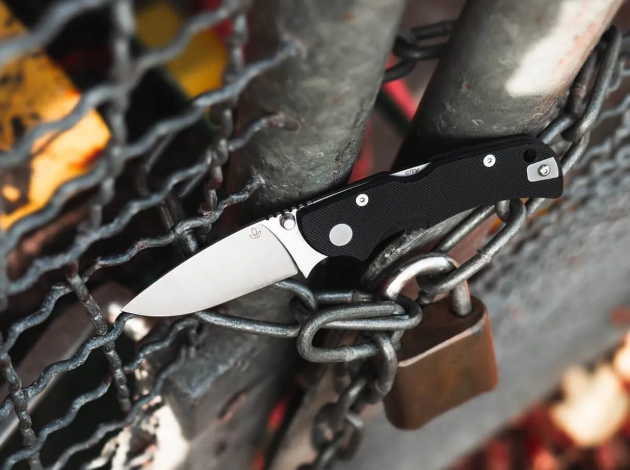 Das Manly City 14C28N Black Ist Ein Praktisches Alltagsmesser Mit Einigen Interessanten Sehenswurdigkeiten. Die Klinge Aus Schnitthaltigem 14C28N Ist Das Wahrzeichen Des Edc-Messers Und Wird Per Daumenpin Angesteuert. Per Backlock Verschwindet Die Klinge Im Rutschfesten Griff Aus G10 Und Sturzt Sich Ins Nachtleben.