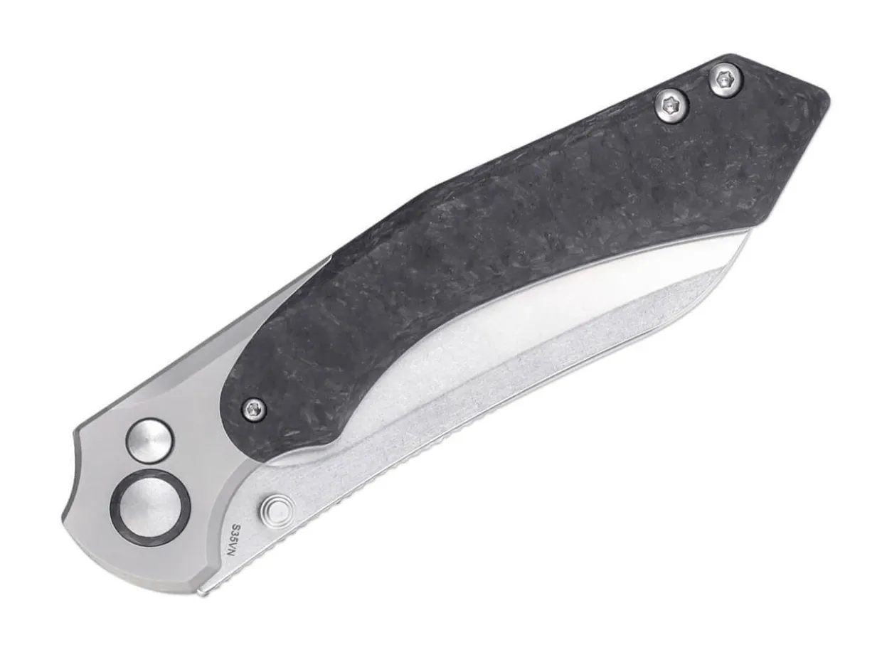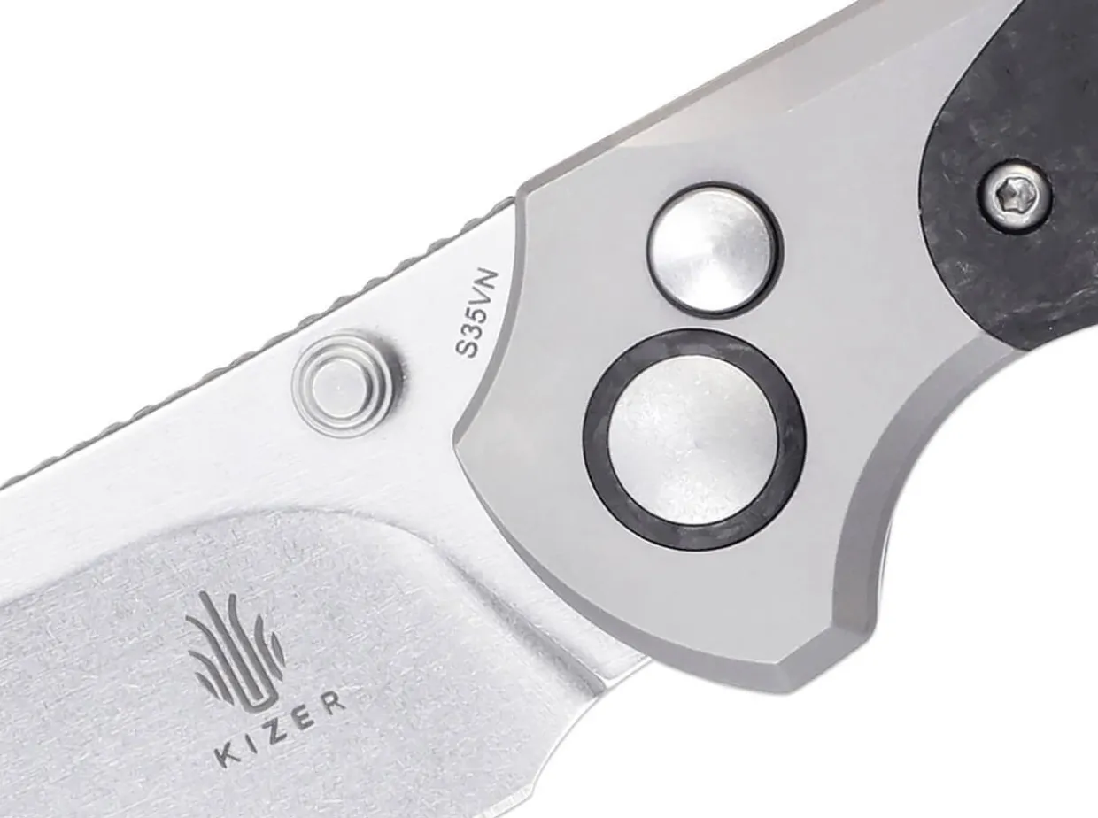 The Futuristic Kizer Clairvoyant From Paul Munko Expands The Comet Family With A Slim Model With Outstanding Features. Striking Lines And The Finest Materials Characterize The Modern Appearance Of The Pocket Knife. The Titanium Bolster Houses The Button Lock For Unlocking The Knife And Forms A Sharp Contrast To The Carbon Fiber Handle Scales, Which Radiate Their Own Unique Glow Under Different Angles Of Light. The Fact That Design Isn’T Everything Is Proven By The Blade Made Of Powder Metallurgy Cpm-S-35Vn, Which Combines High Toughness, Edge Retention And Corrosion Resistance, Making It Ideally Equipped For Difficult Cutting Tasks. With Tip-Up(R) Clip.