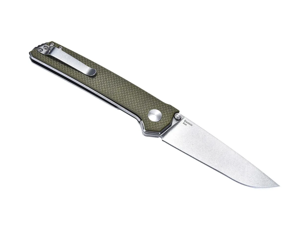 The Kizer Domin Is A Practical, Simple Edc With Structured Green G10 Handle Scales And A Ball-Bearing Vg-10 Blade With Stonewash Finish. It Is Opened With A Thumb Stud And Locked By A Linerlock. With Lanyard Hole And Reversible Clip (Tip-Up/L-R).