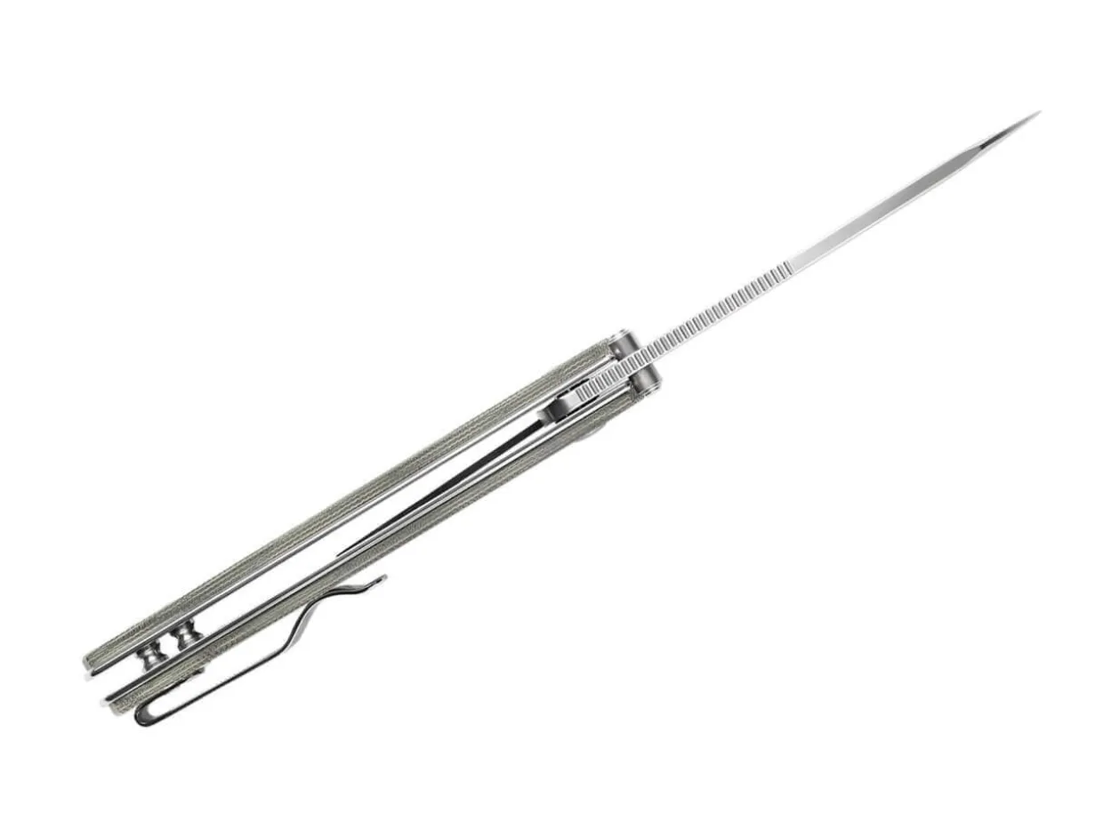 The Kizer Domin Is A Practical, Simple Edc With Textured Green Micarta Handle Scales And A 154Cm Ball Bearing Blade. It Opens With A Thumb Stud And Locks With A Liner Lock. With Lanyard Loop And Convertible Clip (Tip-Up/L-R).