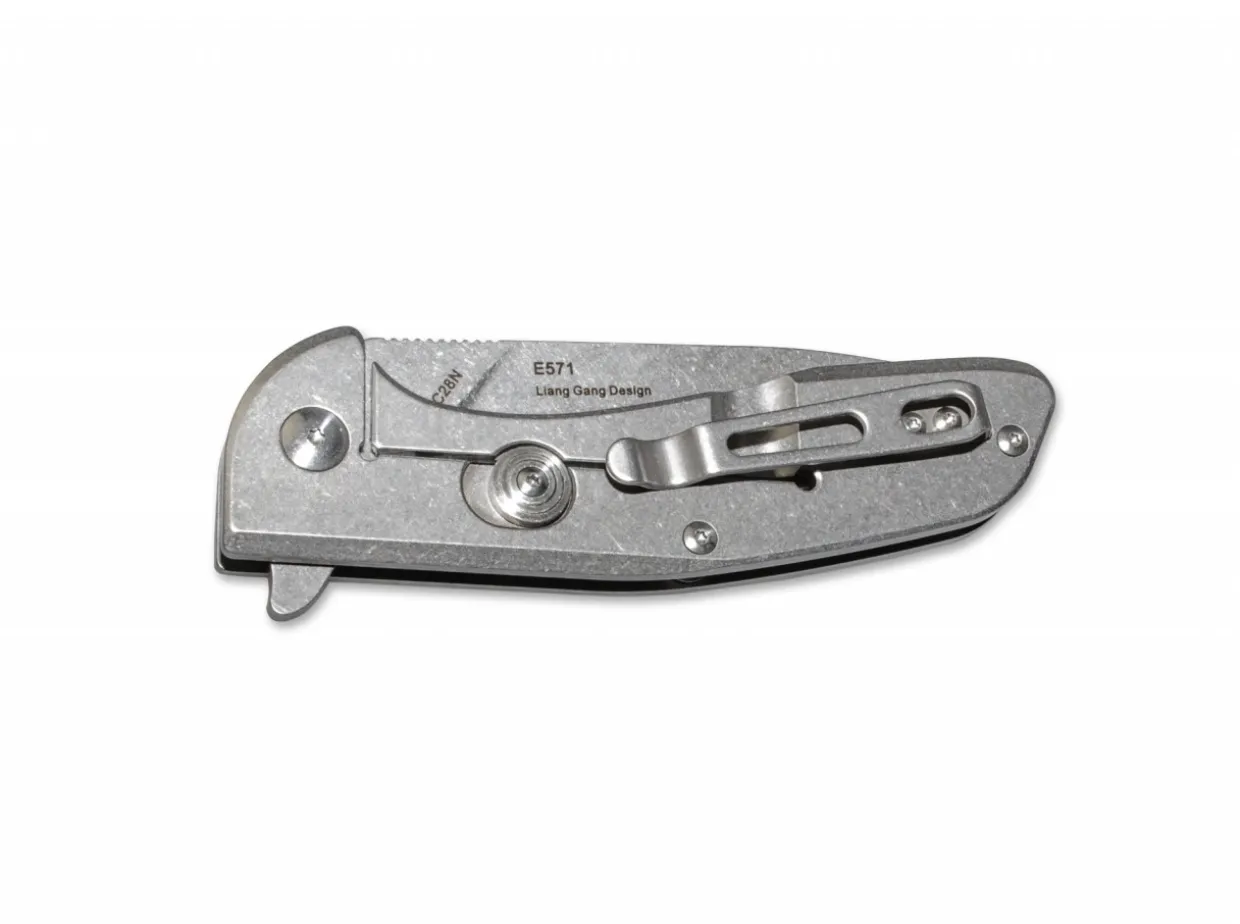 As The First Full-Steel Frame Lock With Flipper, The E571 Assumes A Special Role At Real Steel. The Weight Reduction In The Interior Of The Handle Brings The Knife Down To A Total Weight Of Barely 112 Grams, Thus Representing A True Lightweight In This Class. The Beta-Plus Safety Is An Additional Lock For The Frame Lock That Also Prevents The Lock From Overbending. Ball-Bearing Supported Blade For Smooth Flipper Deployment; Handle And Blade Have A Beadblast Finish. With Removable Clip (Tip-Up).