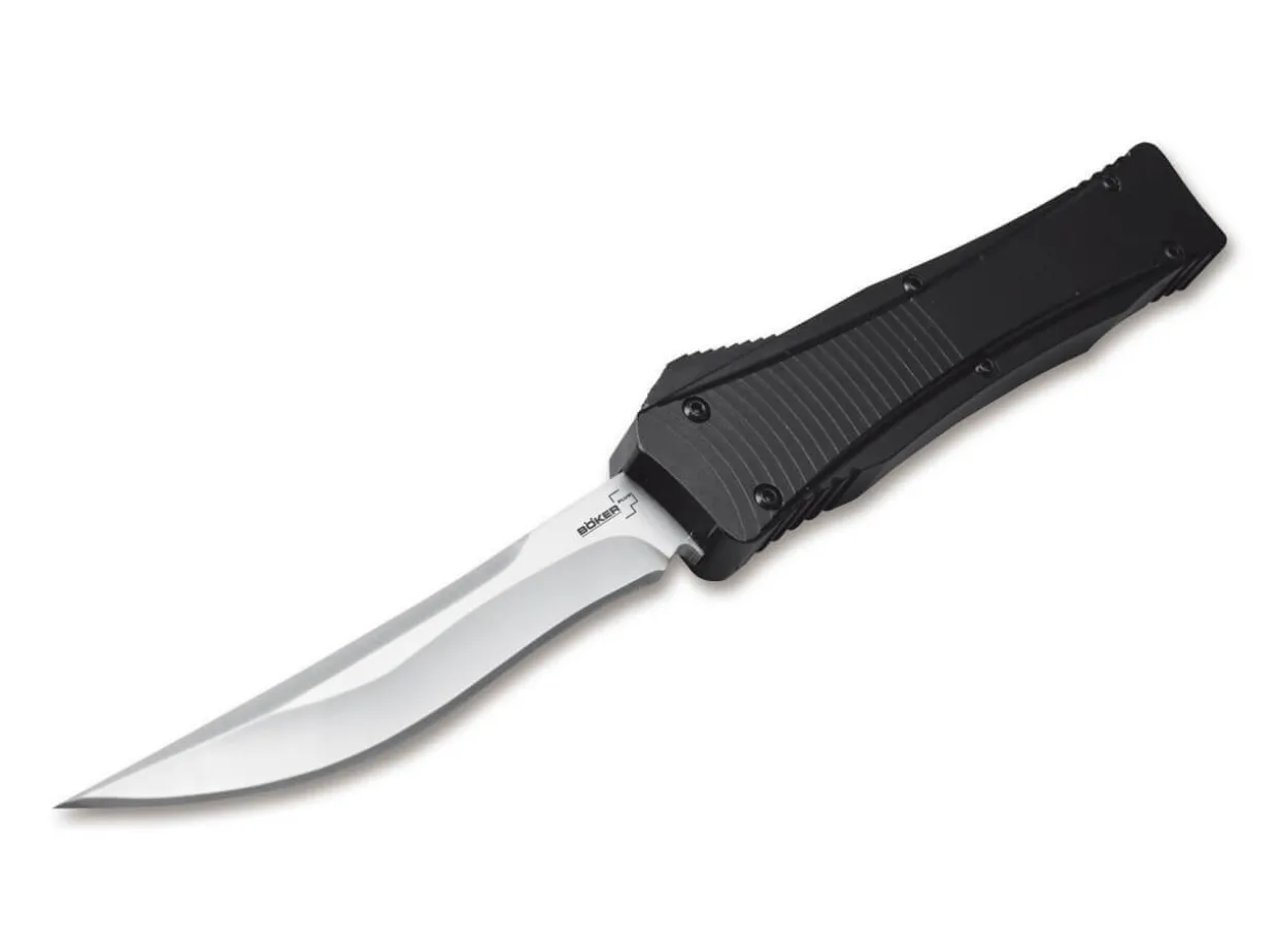 The Boker Plus Eagle Otf, Designed By Raimund Lhotak, Fits Perfectly In The Hand Thanks To Its Titanium-Coated Handle And Ergonomic Design. The Reliable Mechanism Opens And Closes The Blade By Spring Force Via The Release Slide, Which Guarantees Quick Operation. The Breathtaking Dynamic Grinding Lines And The Two-Tone Finish Also Make This Knife An Exquisite Collector’S Item. With Recurve Blade.