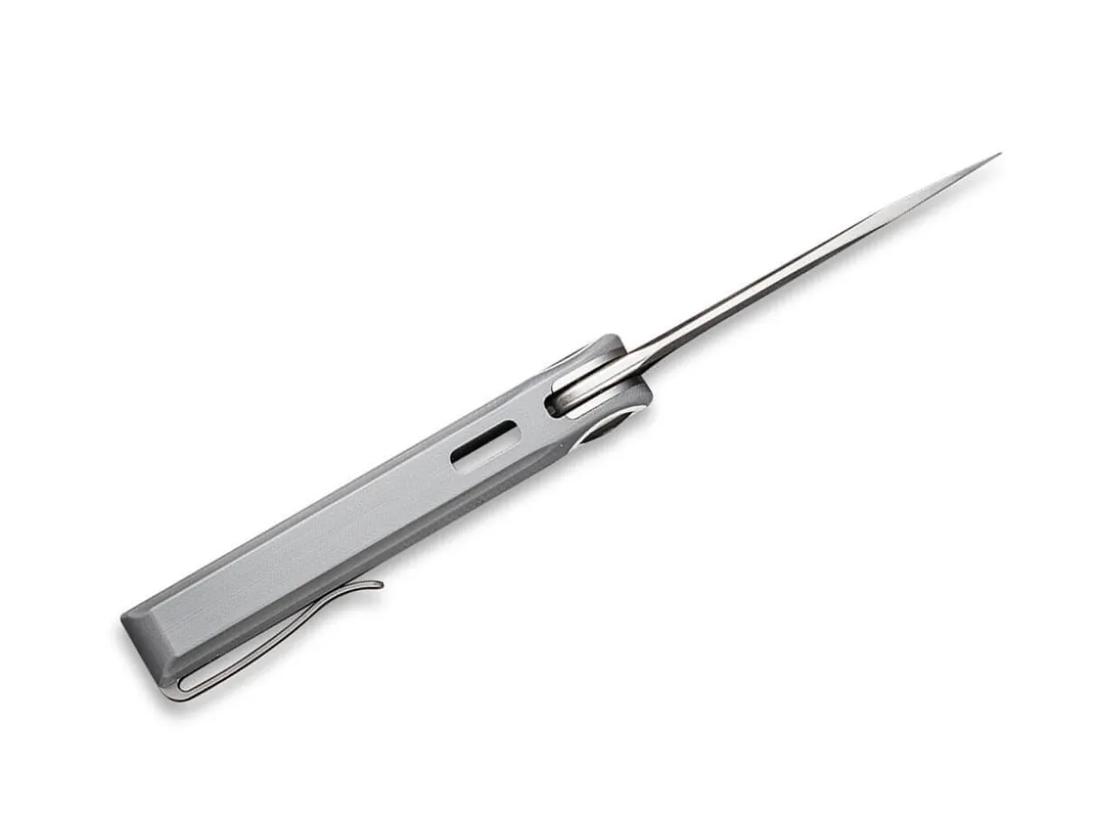 In Greek Mythology, The Eidolon Refers To An Illusion Of A Person. The Dagger Blade Of The We Knife Eidolon Of The Same Name By Justin Lundquist Also Appears Deceptively Real, Although It Has Only Been Honed On One Side. The Powder-Metallurgical Cpm-20 Cv Steel Used Is Characterised By Its High Edge Retention. The Knife Is Opened By A Flipper, While The Linerlock Reliably Secures The Blade. The Straight Handle Is Made Of Grey G10 And Has A Titanium Clip (Tip-Up/R).