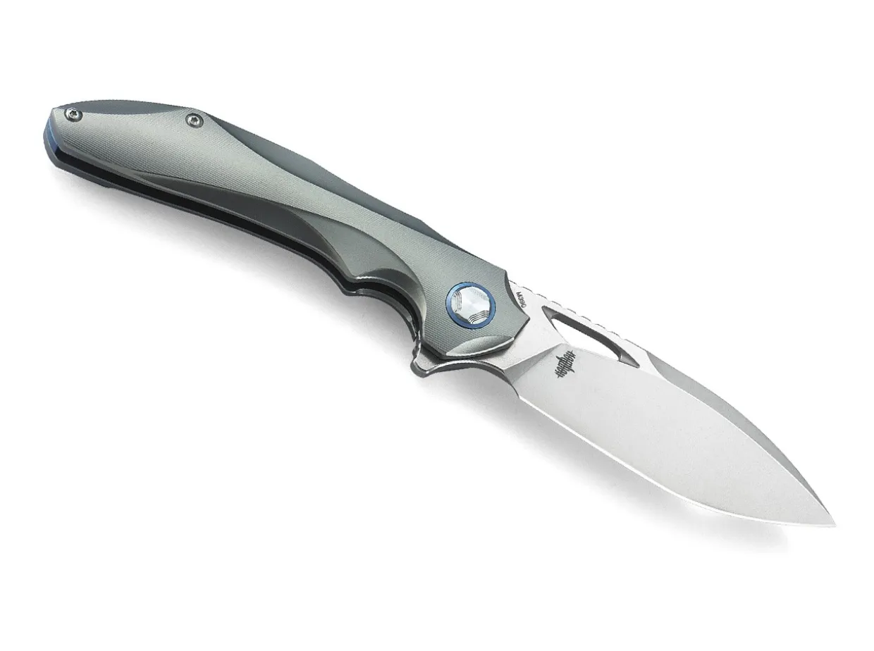 The Bestech Eskra Is A Modern Everyday Pocketknife With A Curved Drop-Point Blade Of Bohler M390. The Elaborate 3D Milled Handle Is Made From Lightweight Titanium. This Version Is Built Specifically For Left-Handed Users. The Unique Millwork And Fine Texture Make For A Secure Grip. The Blade Opens With A Thumb Opening Or Flipper And Is Secured With A Sturdy Framelock. A Striking Pocketknife, Designed And Built With A Great Eye For Details. With A Blue Clip (Tip-Up).