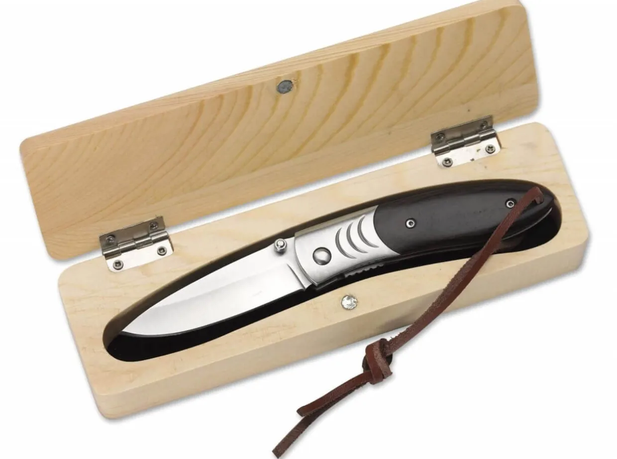 The Blackfox F-70 Is An Elegant Gentlemen’S Pocket Knife With Zebra Wood Scales And Stainless Steel Bolsters, And Has A Removable Clip (Tip Down) And Leather Lanyard. Shipped In Premium Wooden Gift Box With Magnetic Closure.